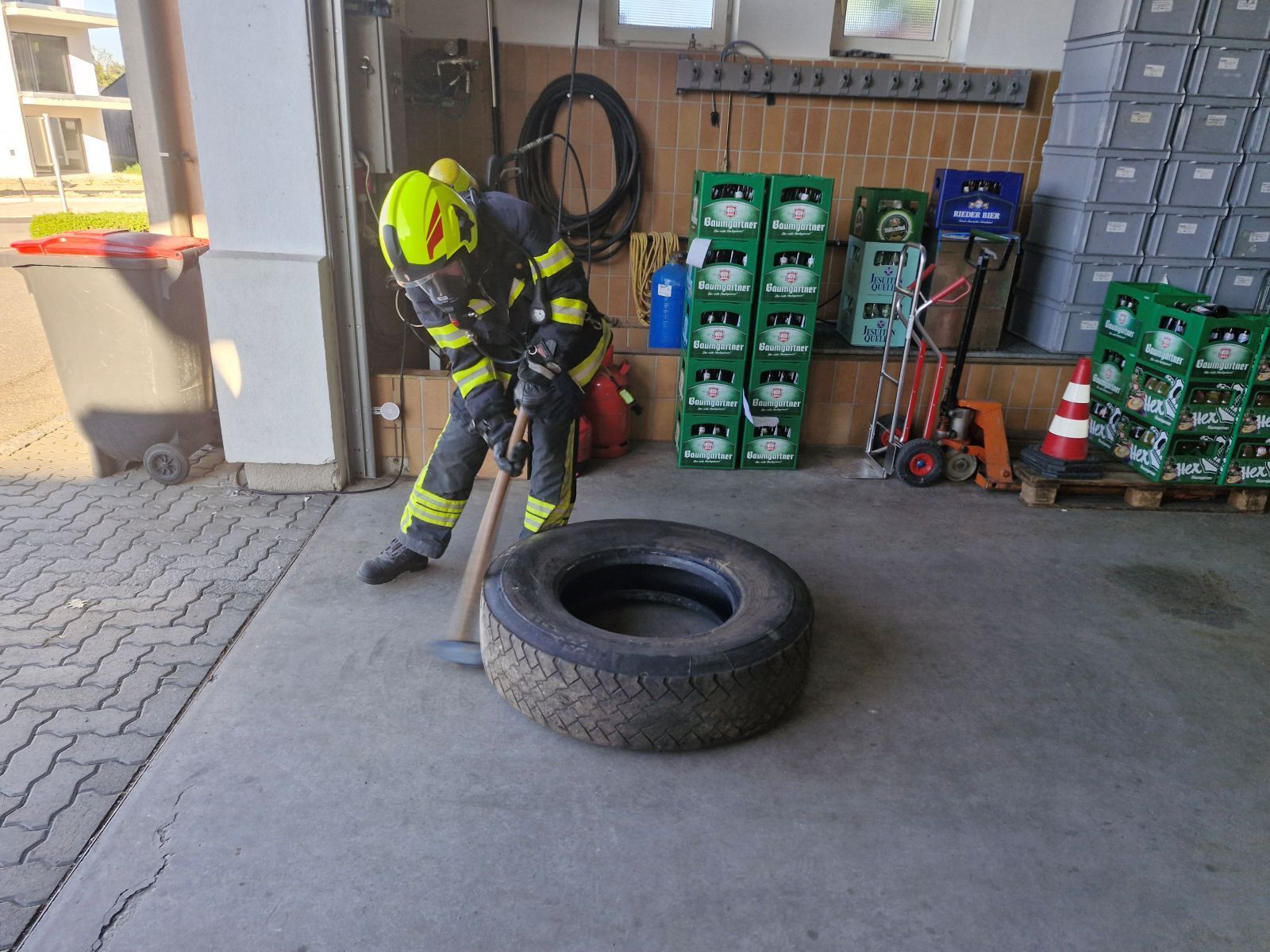 | Station 3 | Hämmern eines LKW-Reifens mit Vorschlaghammer über eine Strecke von 3 m |