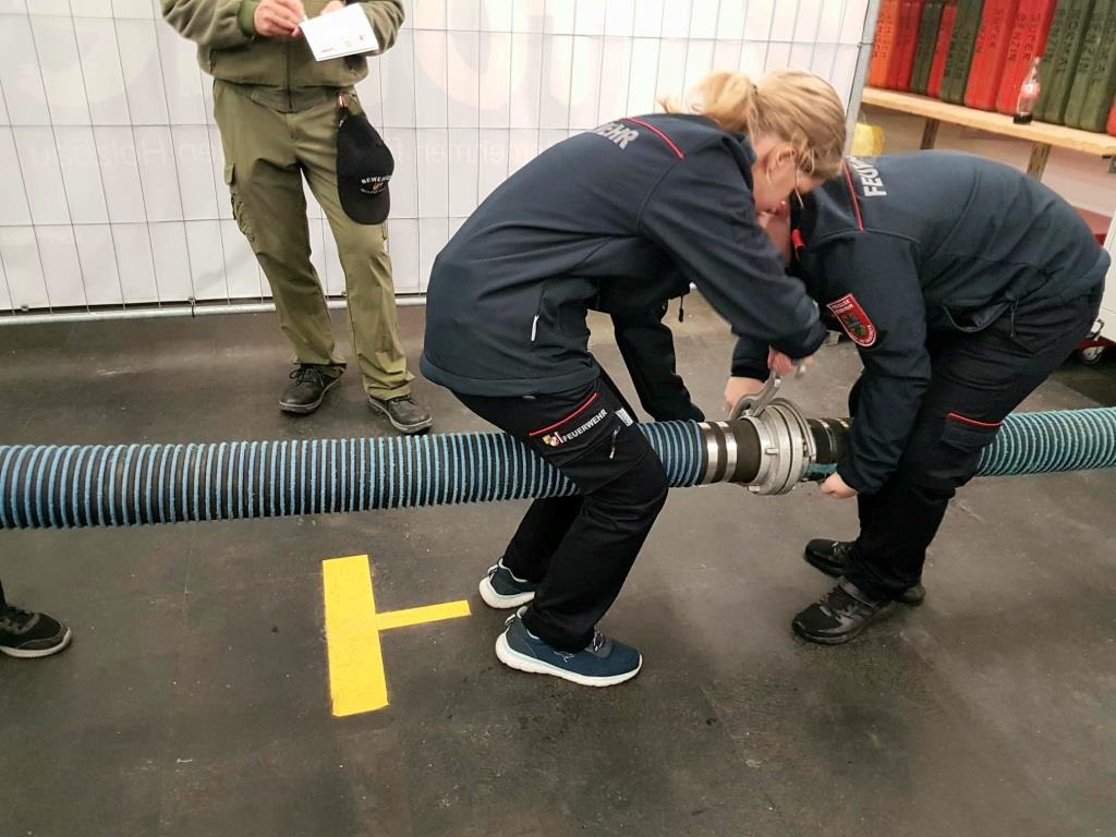 Geprüft wurden Schwerpunkte wie: Das Kuppeln zweier Saugschläuche, Gerätekunde, Setzen eines Unterflurhydranten, Funktionsweise und Handhabung von Feuerlöschern und weitere Themen aus dem Bereich der Ersten Hilfe.