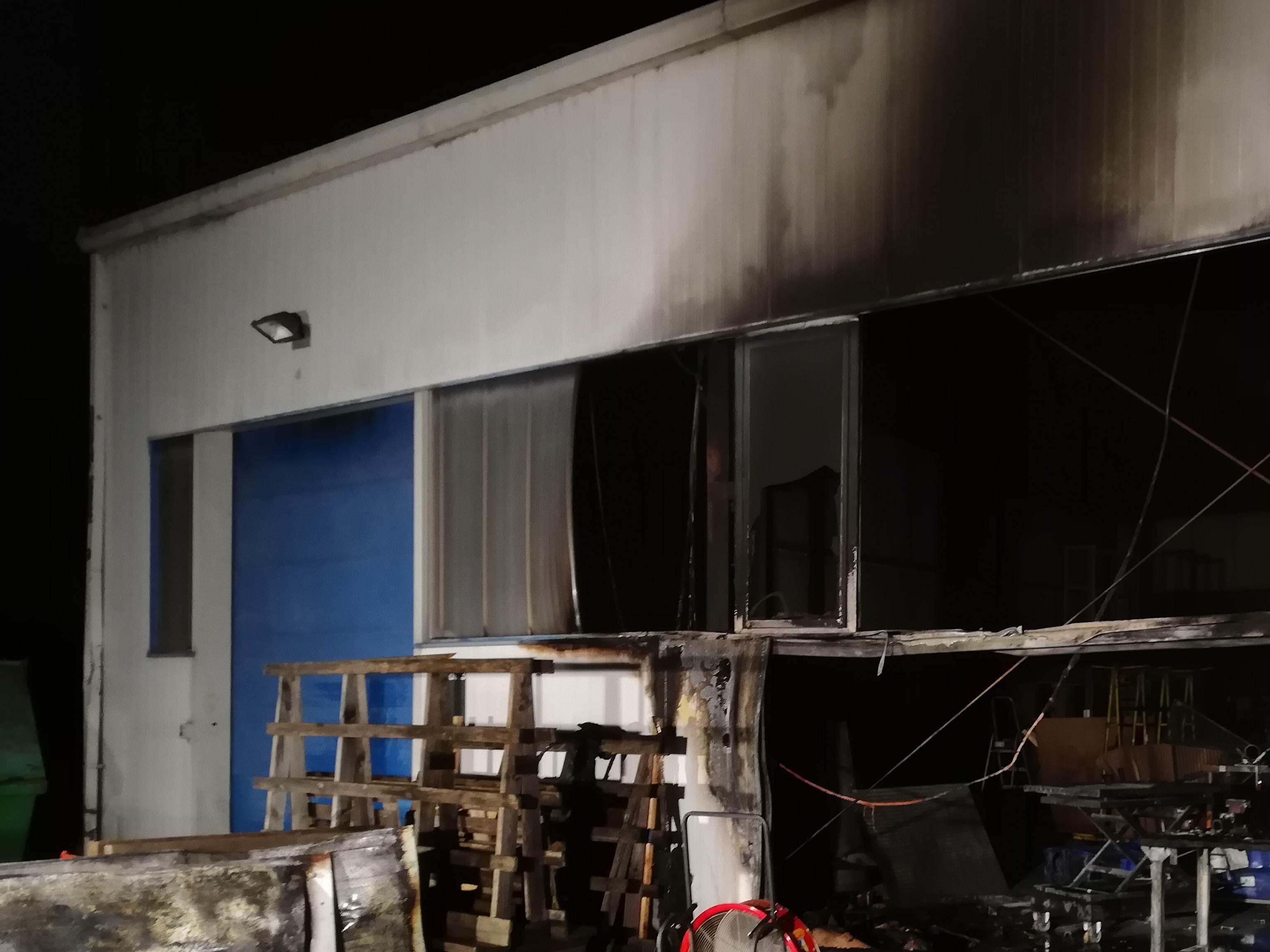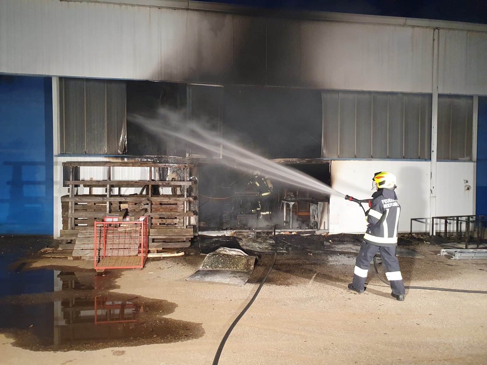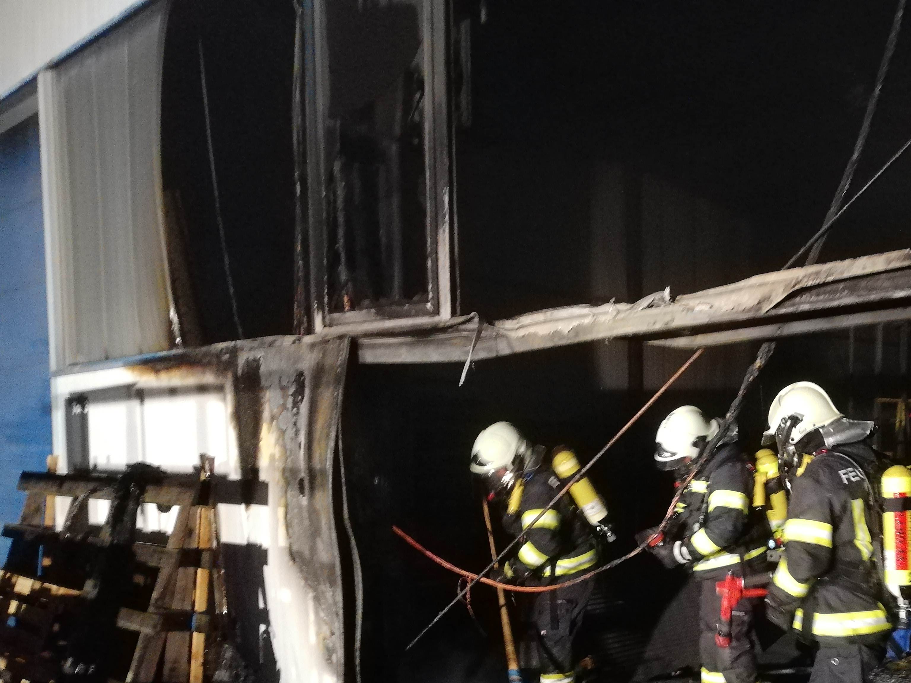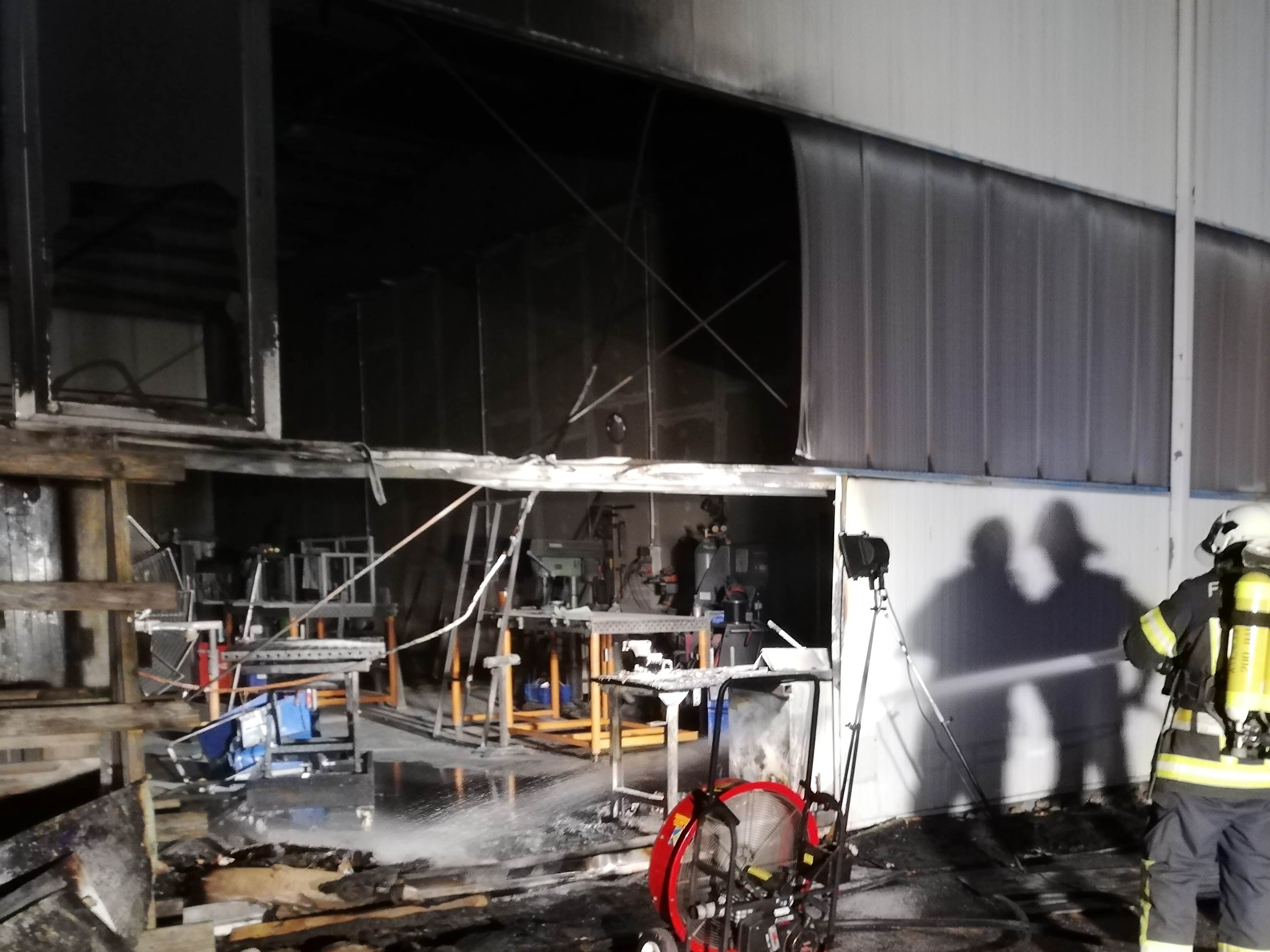 Nachdem eine größere Öffnung in der Lagerhallenwand geschaffen wurde, konnten im Zuge des Innenangriffes mehere Gasflaschen lokalisiert und aus dem Gefahrenbereich gebracht werden.