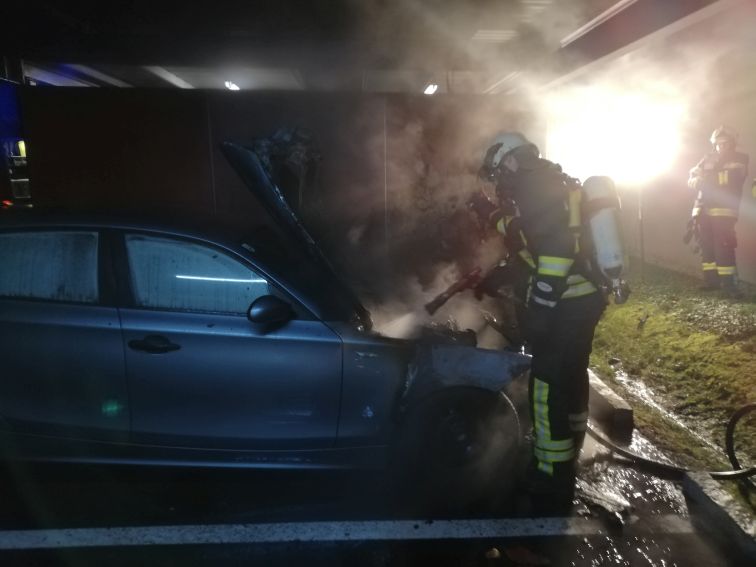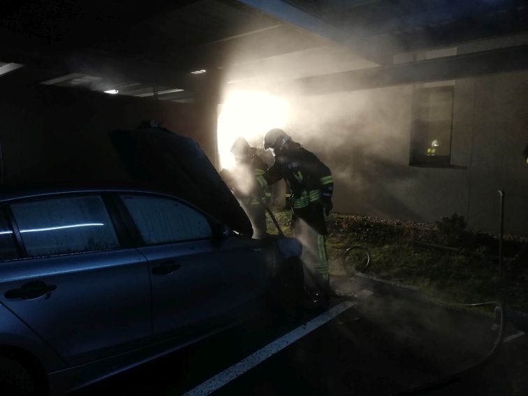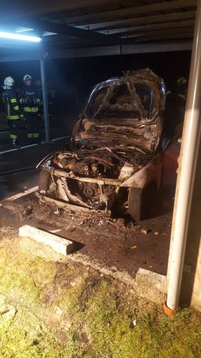Weil die Bewohner den Brand rasch bemerkten und den Notruf absetzten, konnte zumindest ein größerer Schaden an den Gebäuden verhindert werden. Der Pkw brannte im Motorraum aus noch ungeklärter Ursache aus.