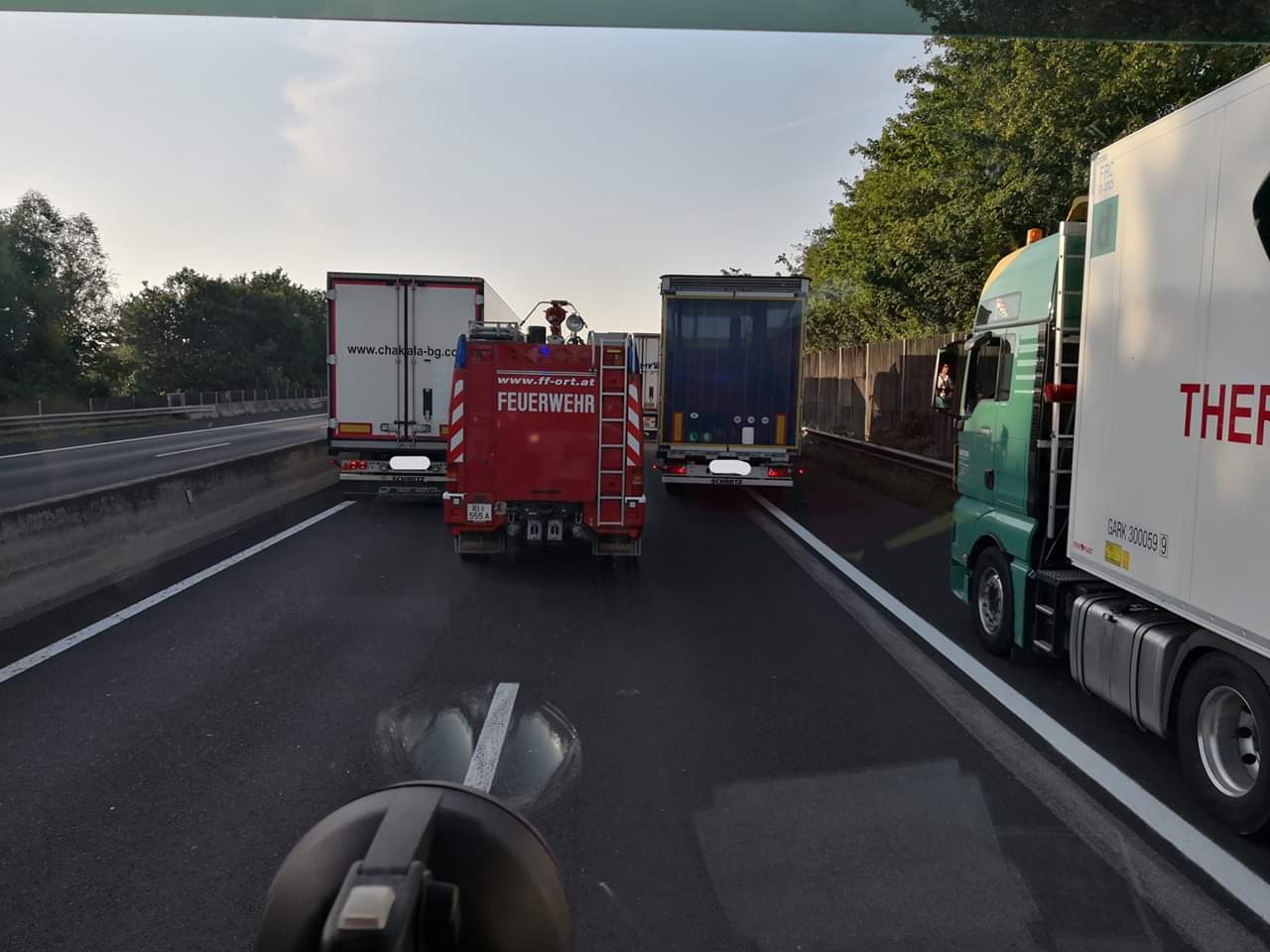 Einsatzalarmierung A8 Fahrtrichtung Wels der Feuerwehren Ort und Traxlham zu einem Fahrzeug Brand. An der Einsatzstelle bot sich ein anderes Szenario. Wie durch ein Wunder konnte der Fahrer sein Fahrzeug unverletzt verlassen.