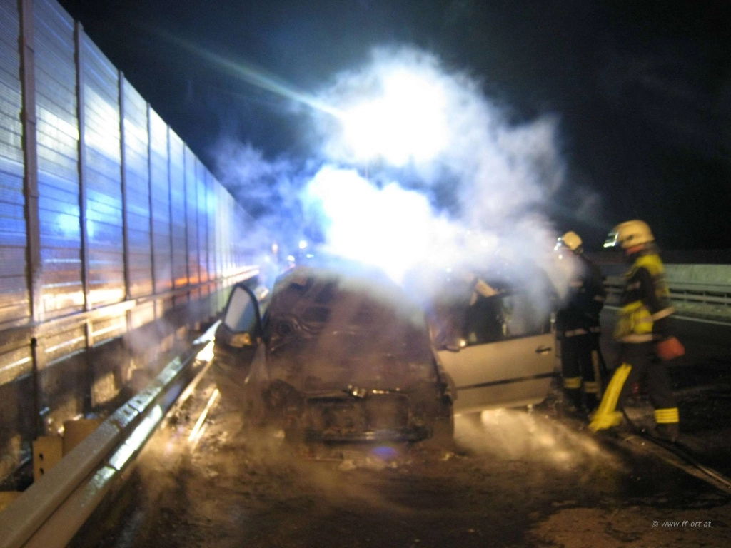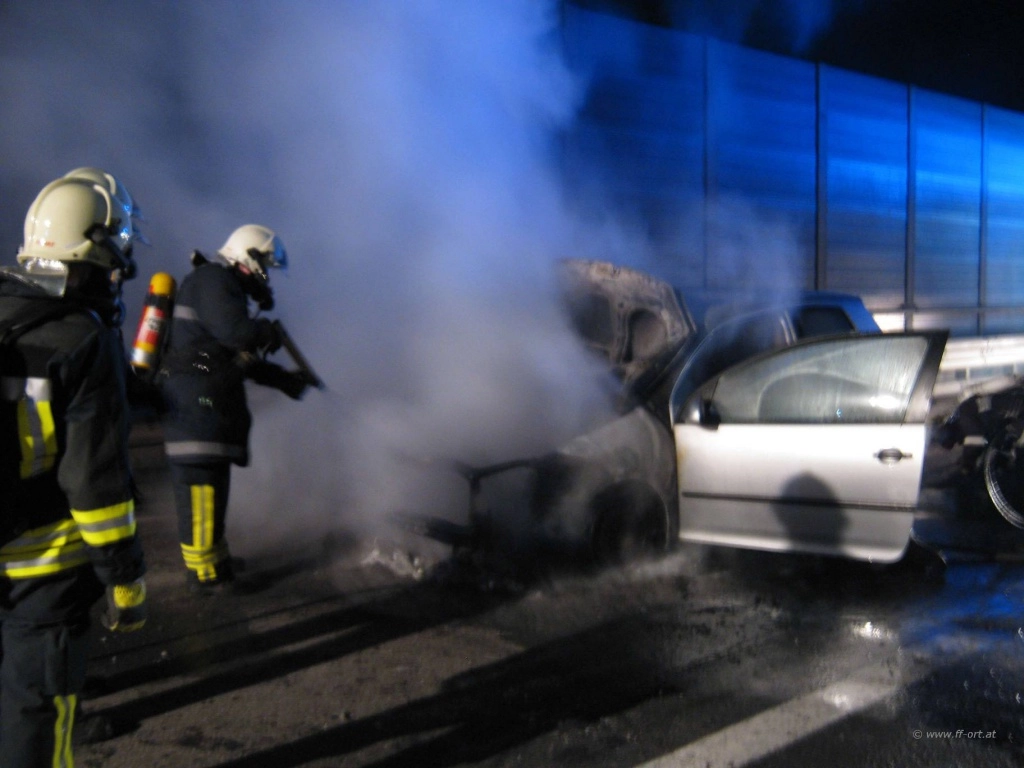 Fahrzeugbrand eines PKW A8 Fahrtrichtung Wels