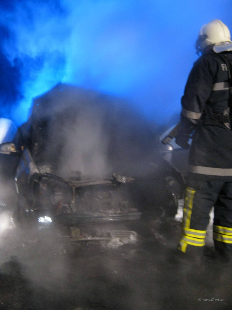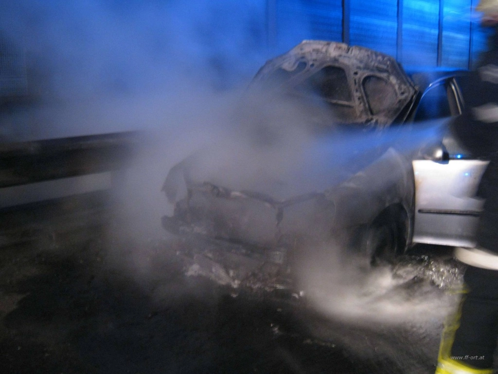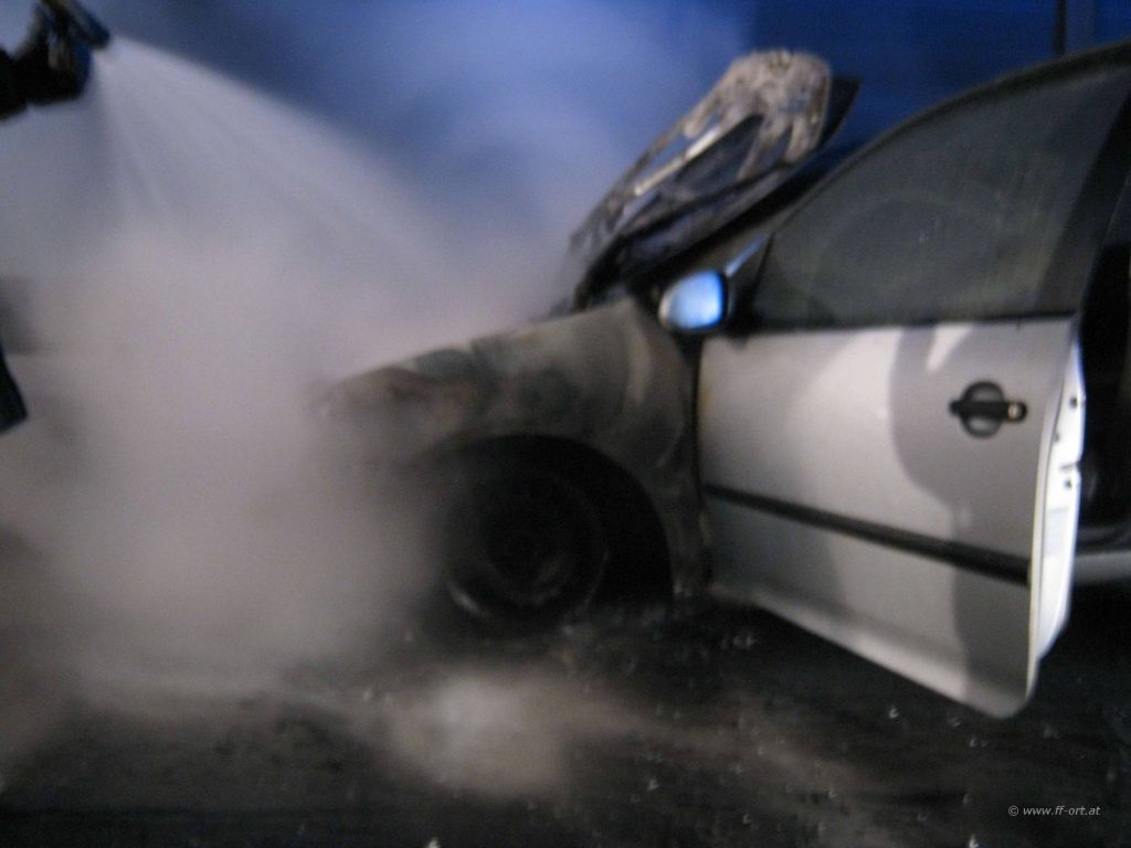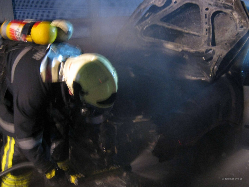 Mittels HD-Rohr und unter Verwendung von schwerem Atemschutz konnte der PKW rasch gelöscht werden.