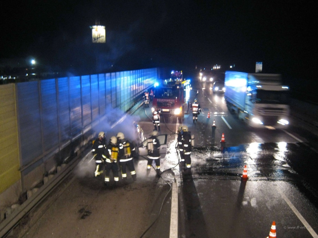 Kurz nach der Auffahrt wurde der brennende PKW vorgefunden.