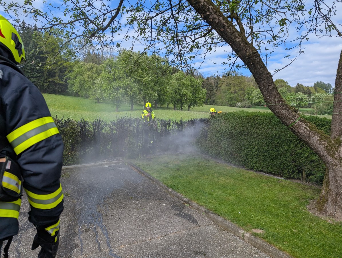 Am Nachmittag des 22. April 2025 wurden die Feuerwehren Ort und Osternach zu einem Heckenbrand in der Ortschaft Osternach alarmiert.