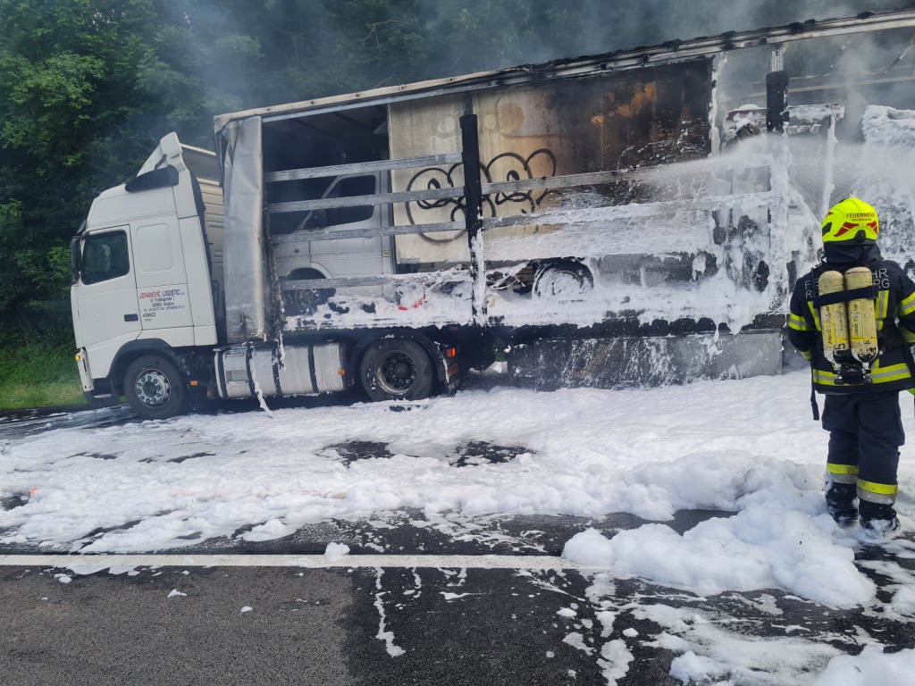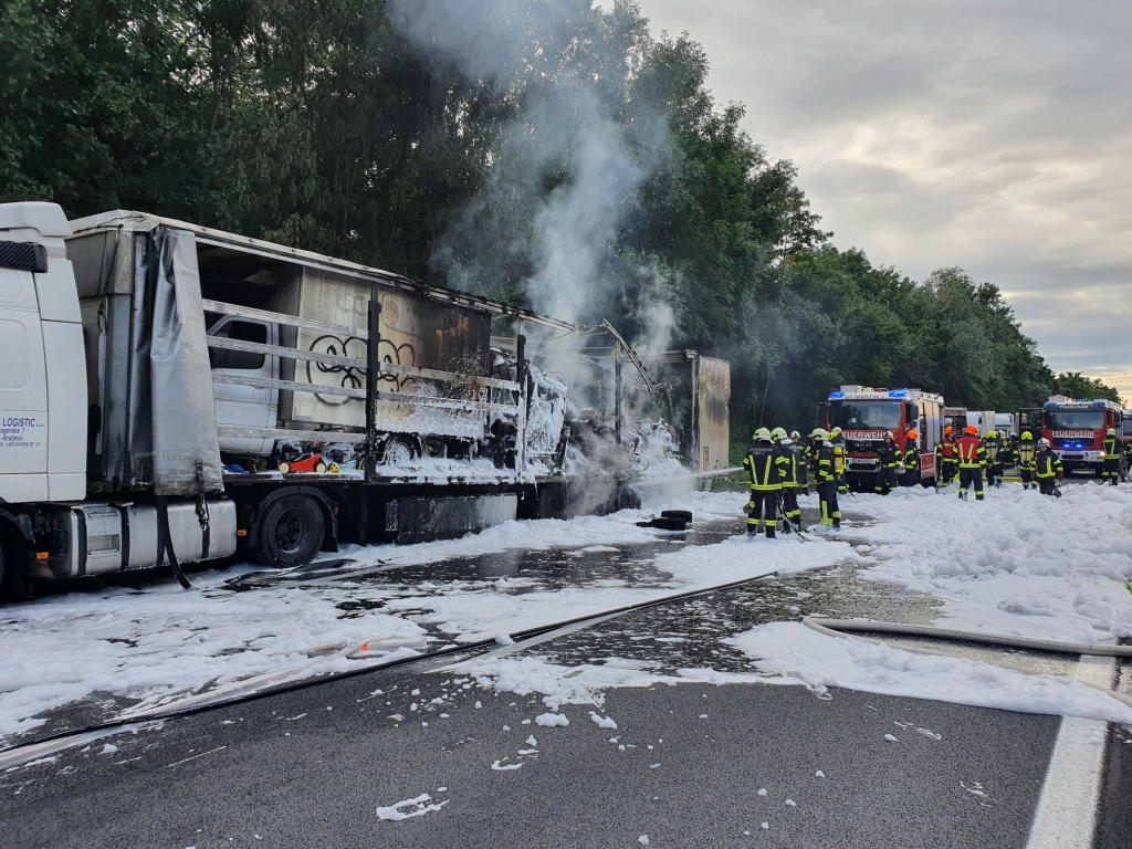 Am 05.07.2021 wurde die FF Ort am späten Nachmittag zu einem KFZ Brand auf der A8, Fahrtrichtung Voralpenkreuz, alarmiert.