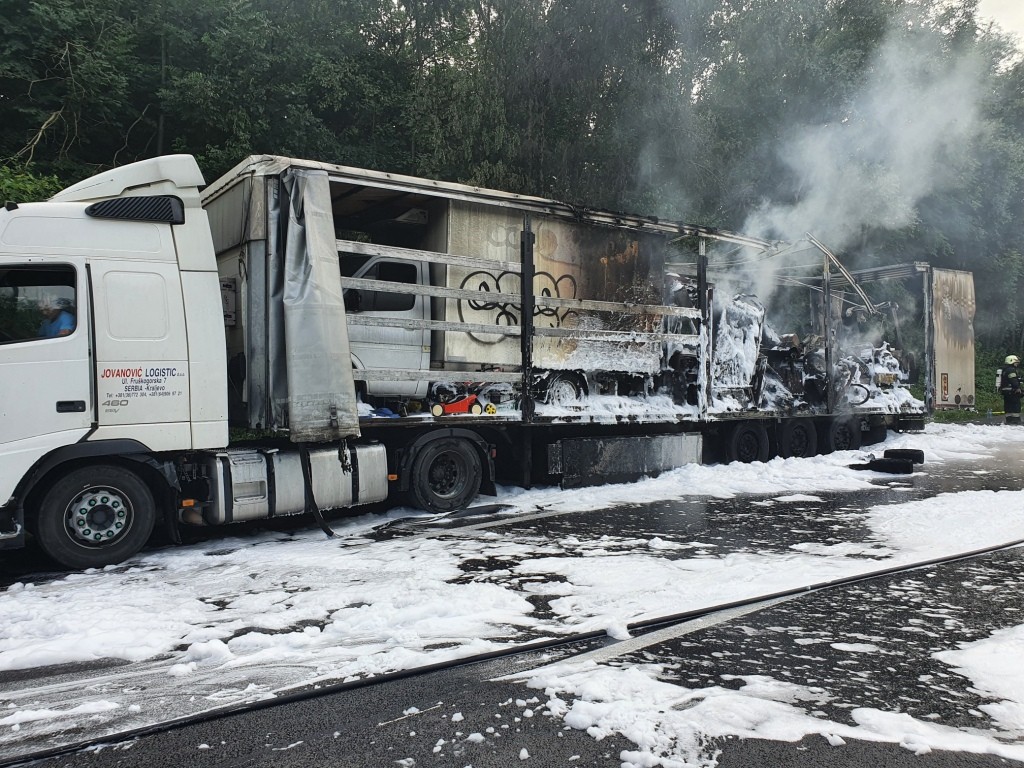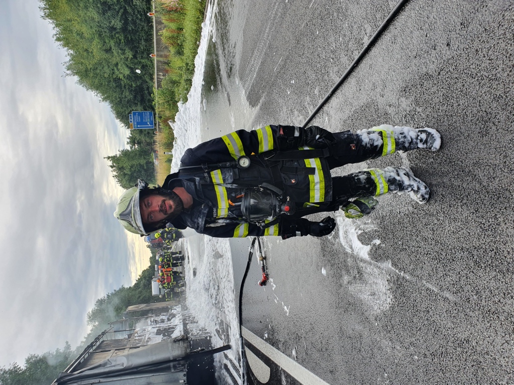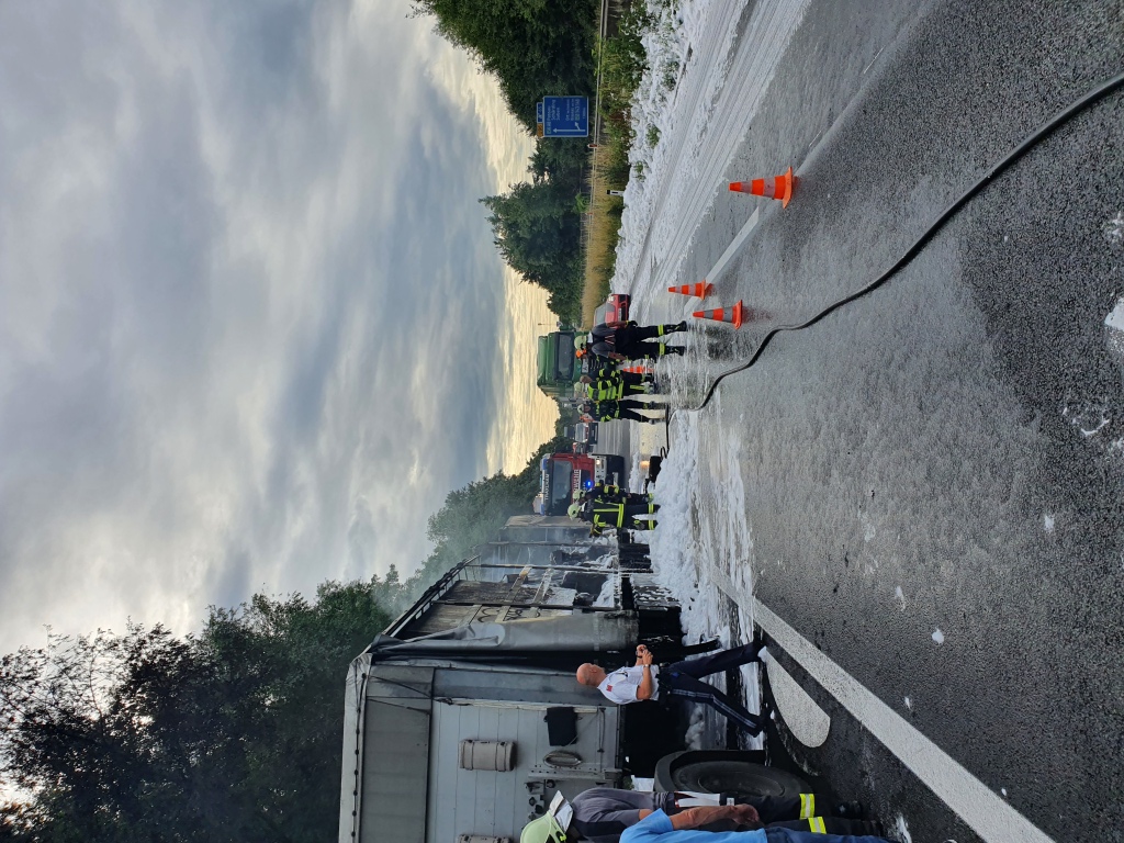Als Tank Ort am Einsatzort eintraf, stand ein Sattel-Auflieger bereits in Vollbrand.