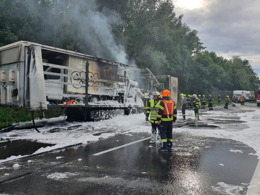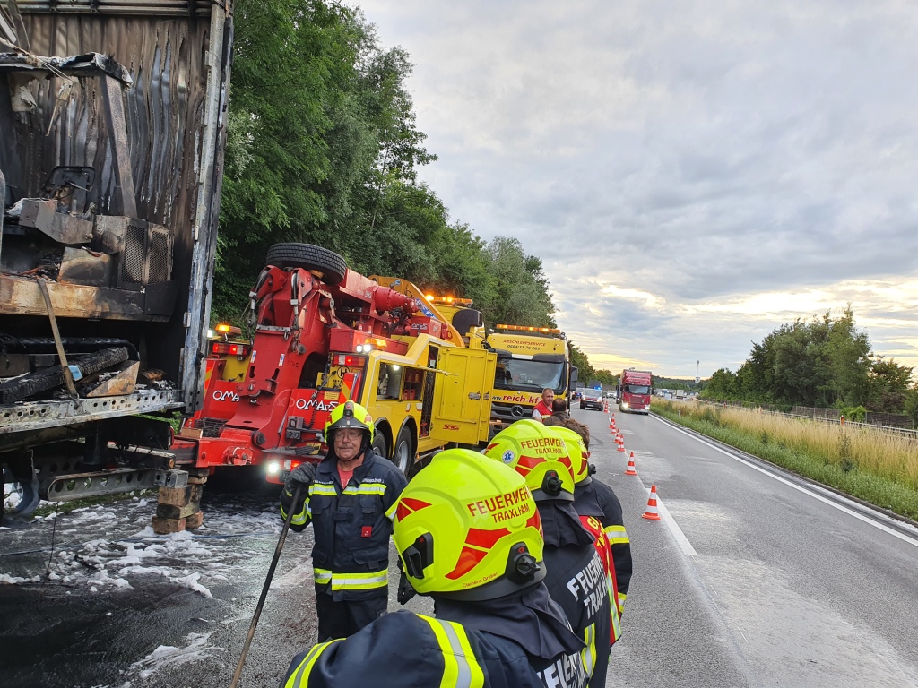 Nach Absicherung der Einsatzstelle durch ASFINAG und Polizei, begannen die Feuerwehren Traxlham und Ort im Innkreis mit der Brandbekämpfung unter schwerem Atemschutz und Mittelschaumrohr, während die Feuerwehren Antiesenhofen, Reichersberg, Forchtenau und St. Martin die Wasserversorgung sicher stellten.