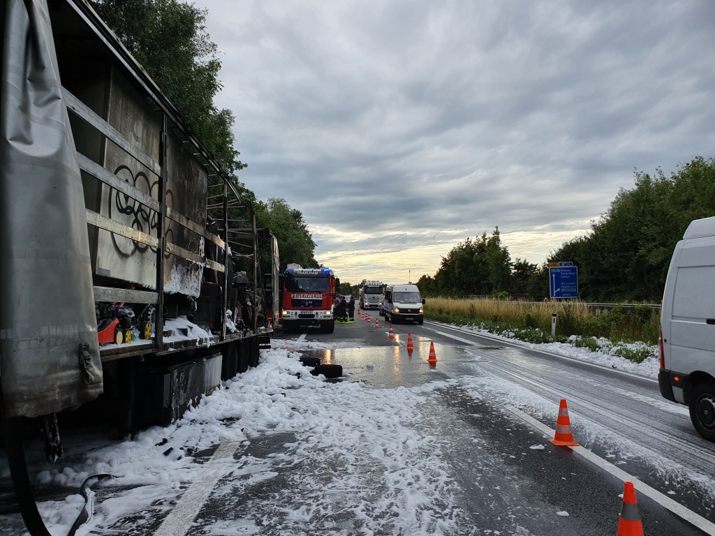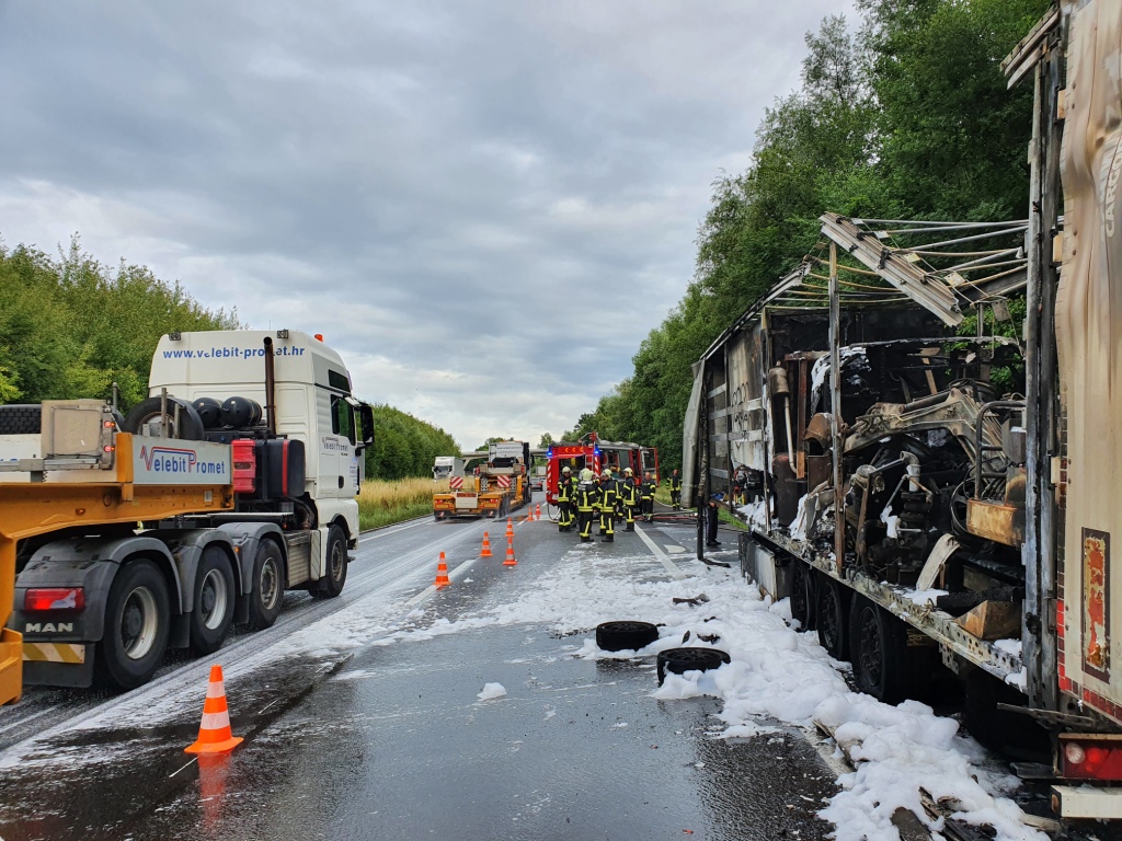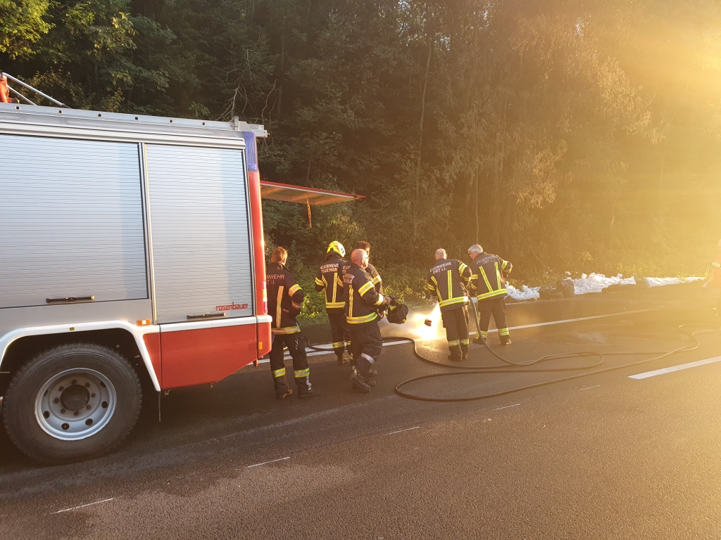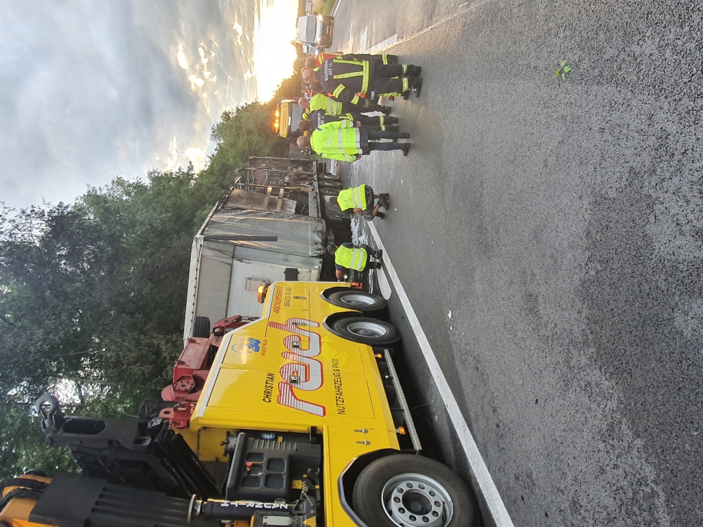 Die Aufräumarbeiten und damit verbunden Verkehrseinschränkungen, dauerten bis in die frühen Abendstunden an, der ausgebrannte Auflieger wurde durch das Abschleppunternehmen Reich entfernt.