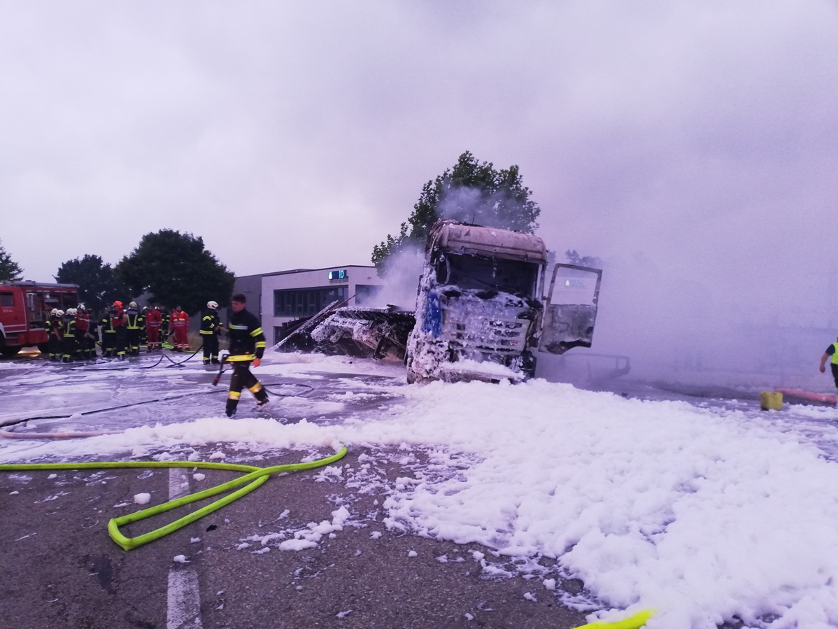 Mittels 2 Mittelschaumrohren und unter schwerem Atemschutz, konnte der Brand gelöscht werden.