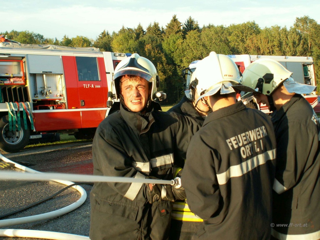 Nach dem Eintreffen am Übungsort mussten Personen mittels Atemschutz gerettet werden. Die zweite Aufgabe bestand darin, mit unserem Tanklöschfahrzeug den Brand zu bekämpfen.