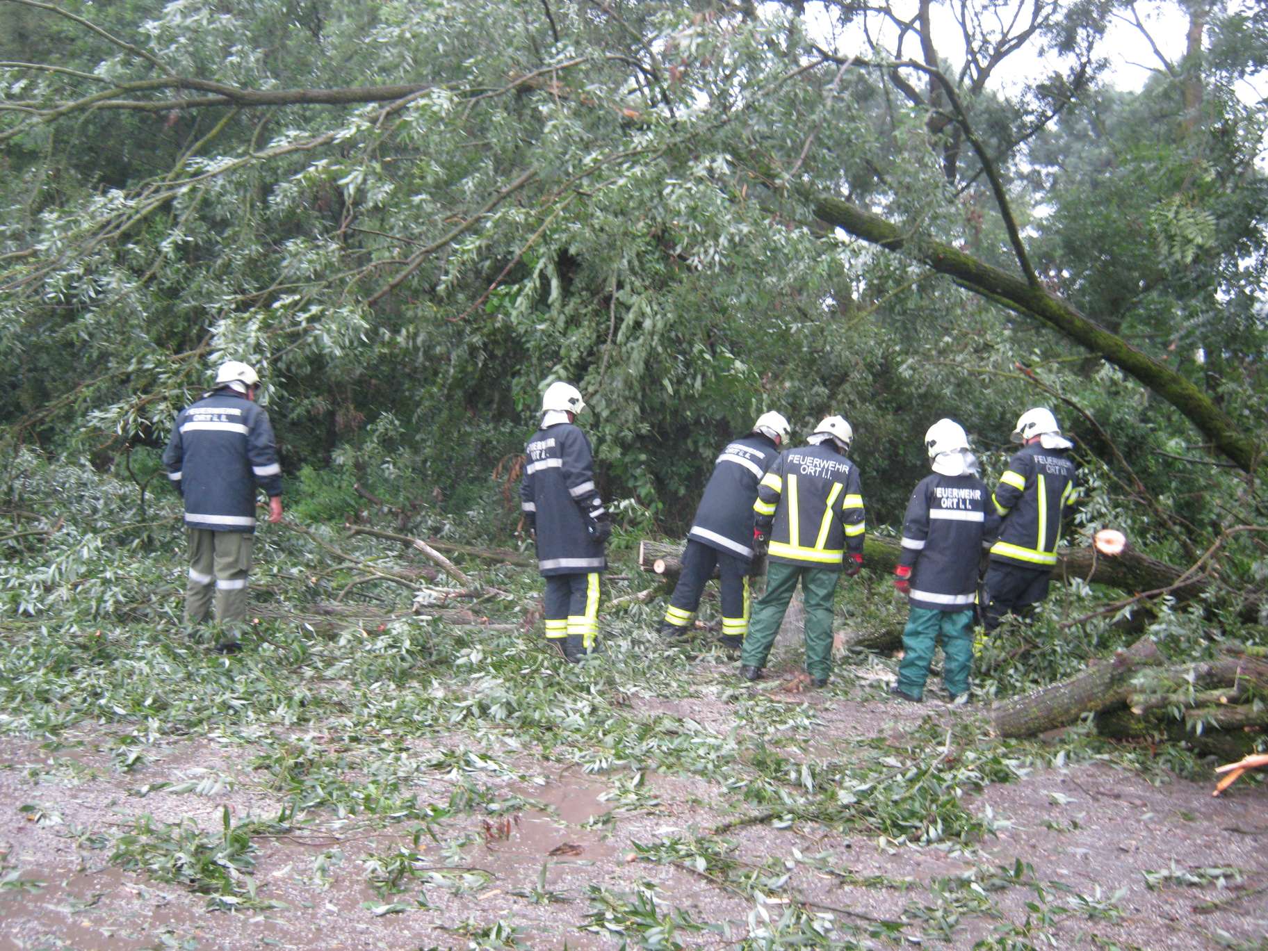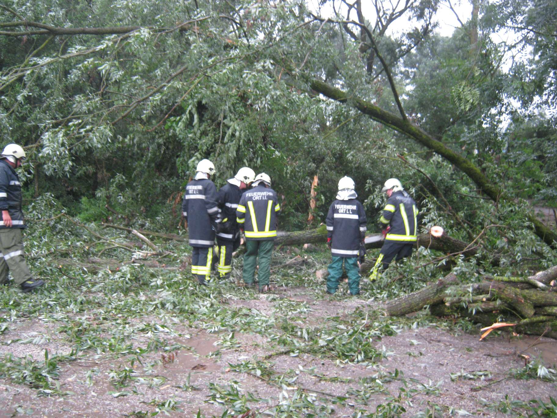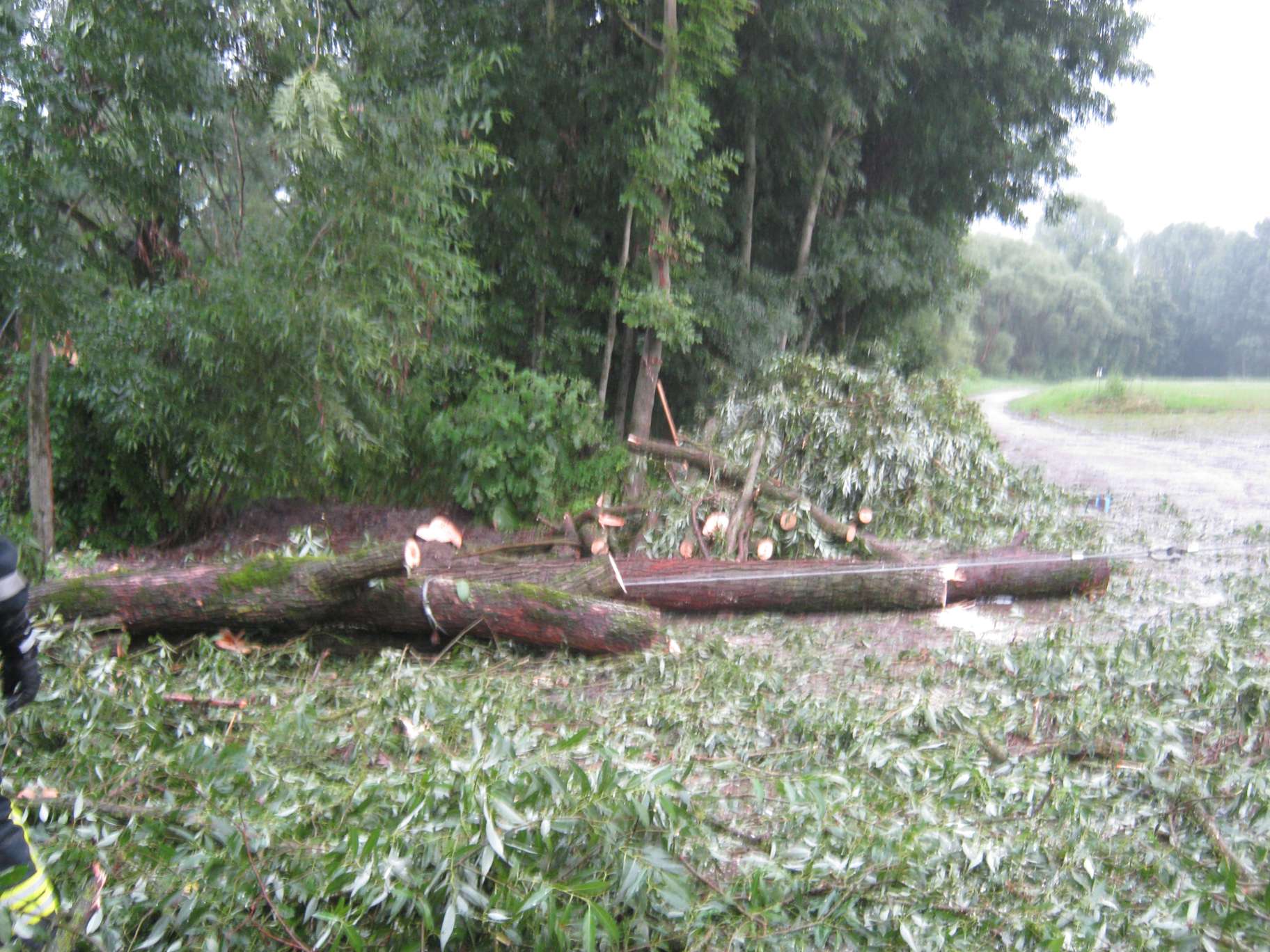Aufräumarbeiten nach Sturm am 13. Juli Antiesenweg Nähe Sportplatz