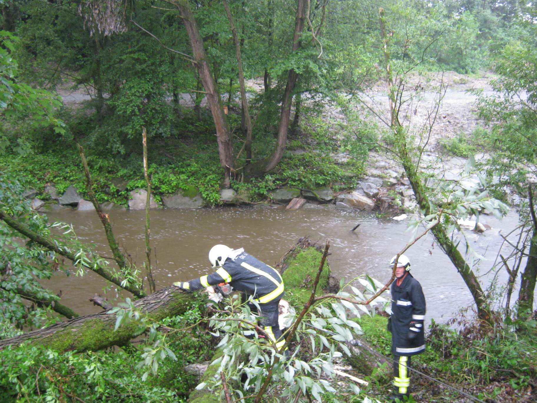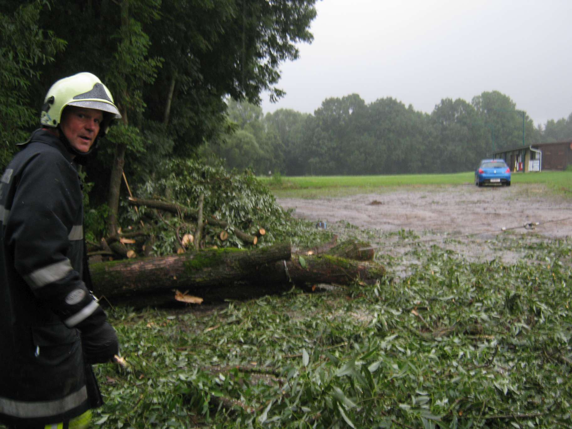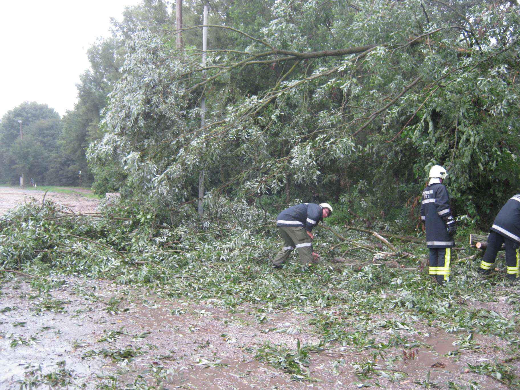Aufräumarbeiten nach Sturm am 13. Juli Antiesenweg Nähe Sportplatz
