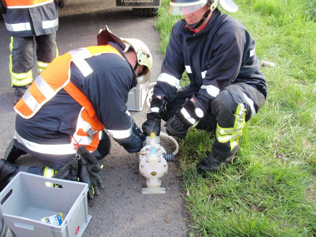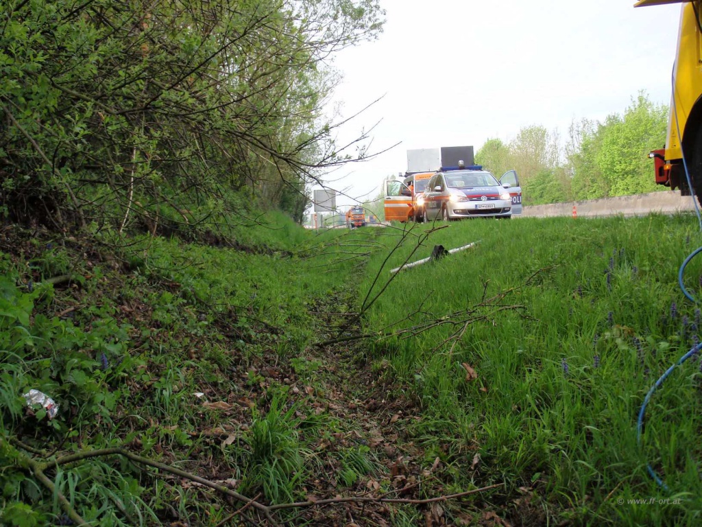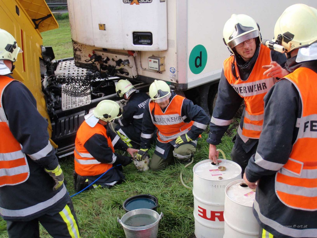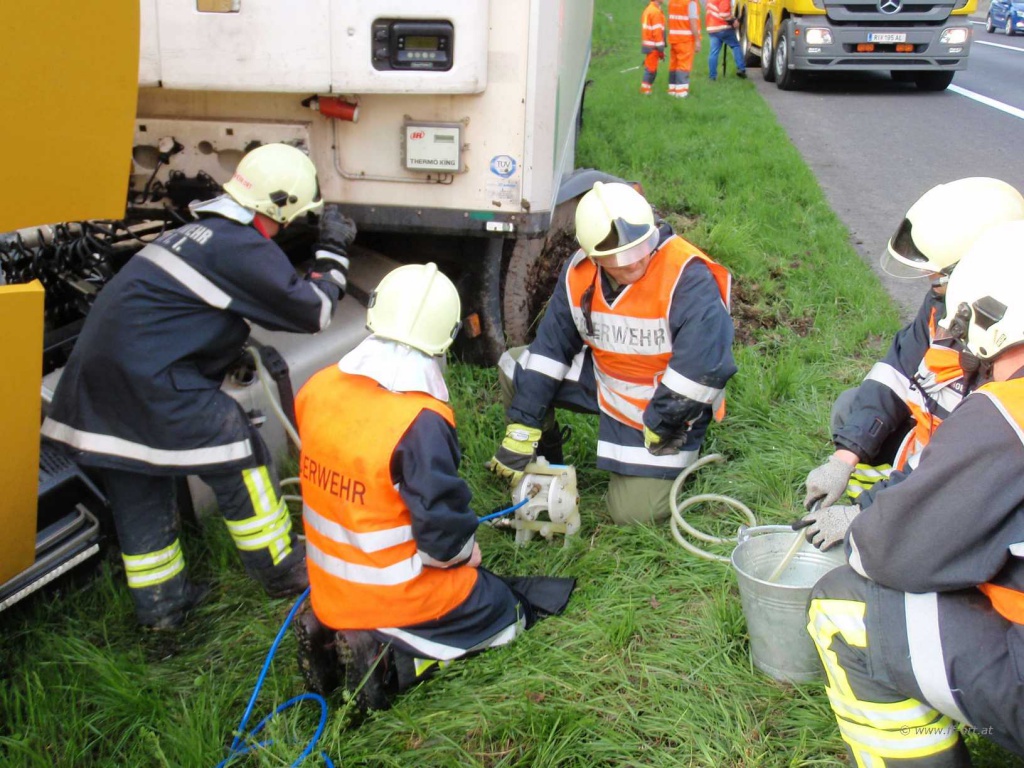 Polizei und Asfinag befanden sich bereits vor Ort. Wir begannen den restlichen Diesel, welcher sich noch in einem Tank befand, umzupumpen.