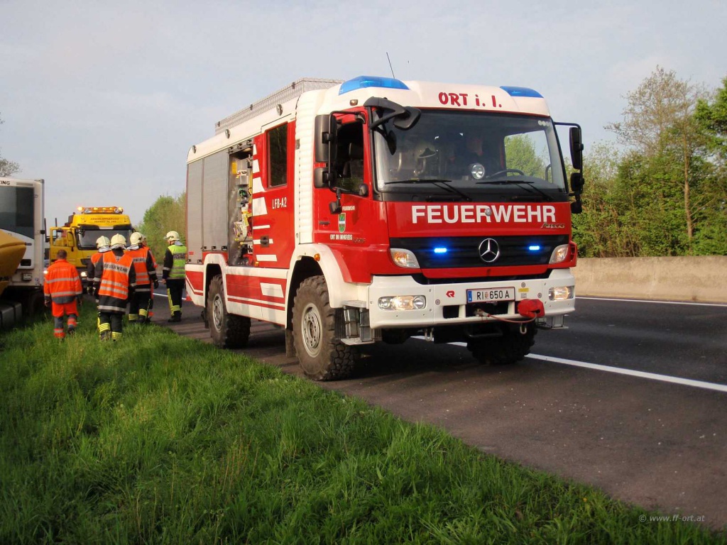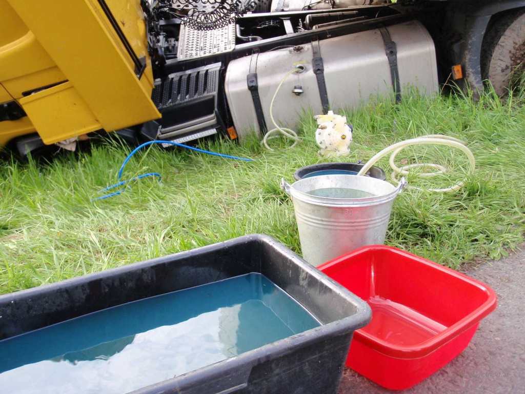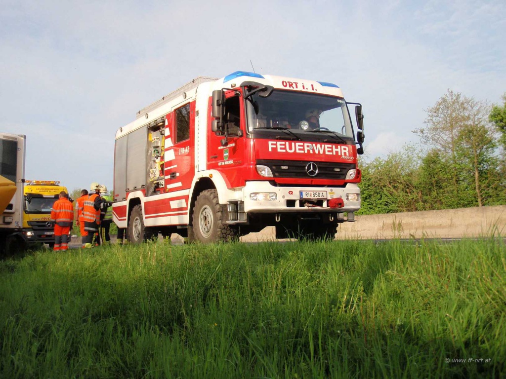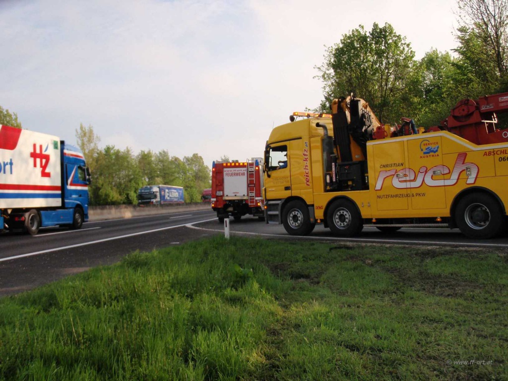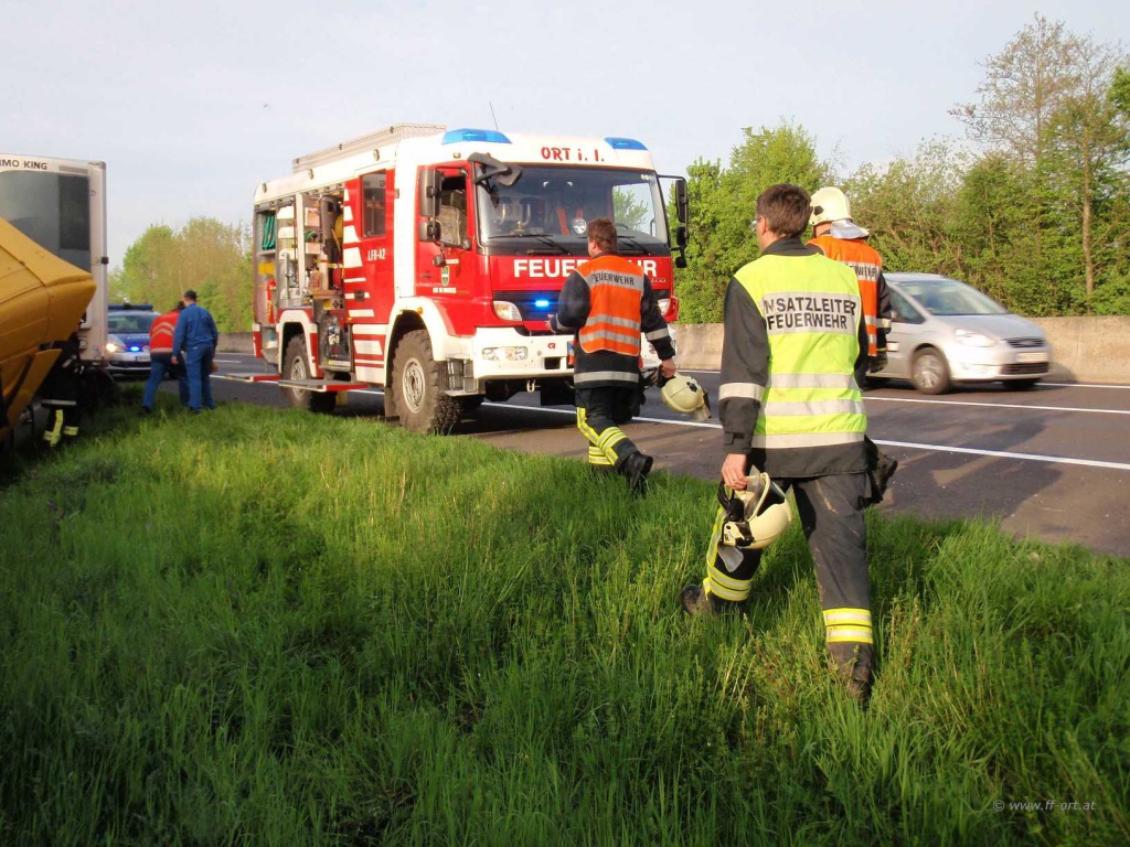Polizei und Asfinag befanden sich bereits vor Ort. Wir begannen den restlichen Diesel, welcher sich noch in einem Tank befand, umzupumpen.