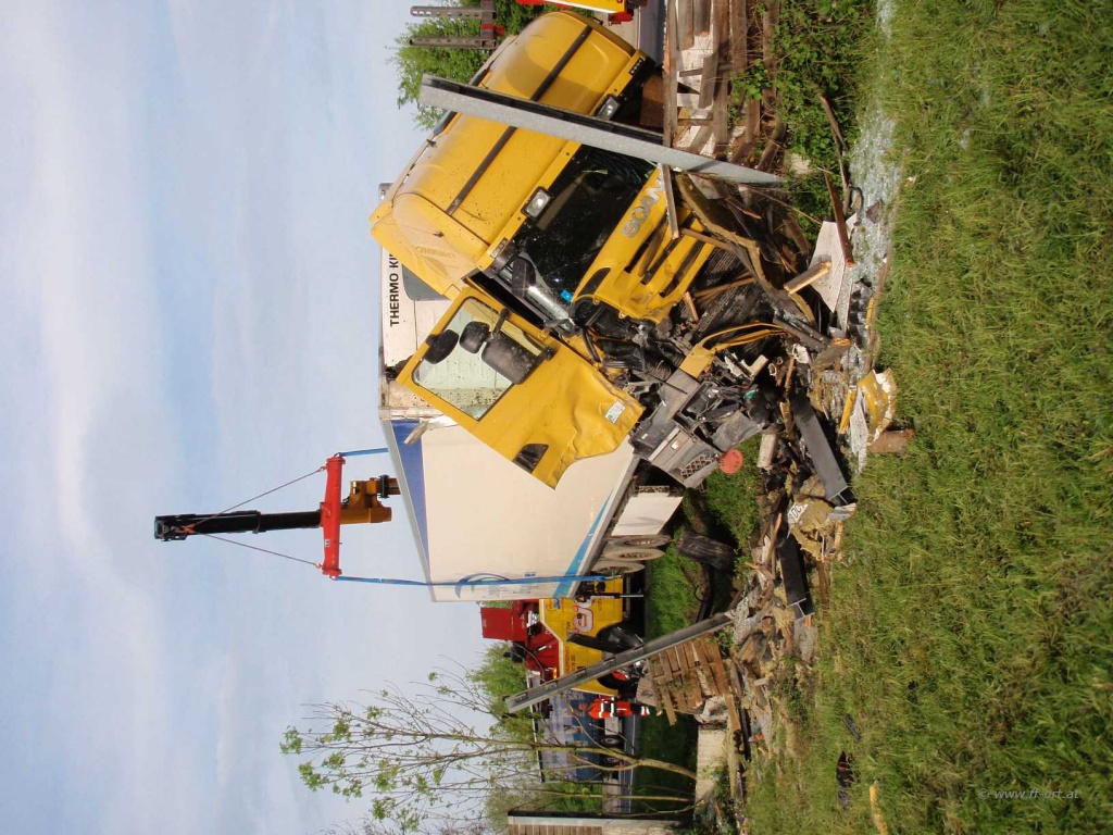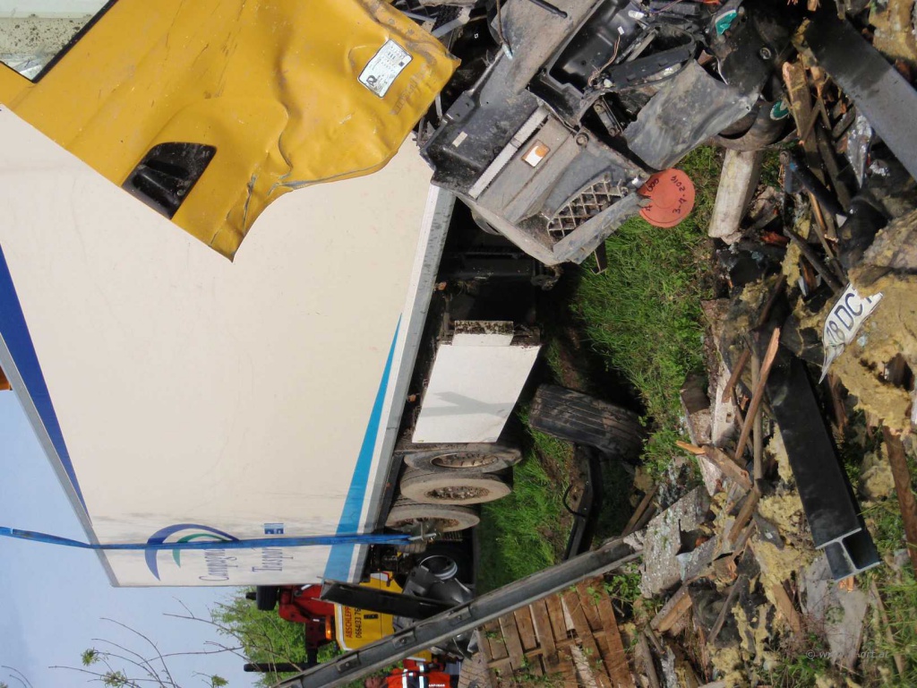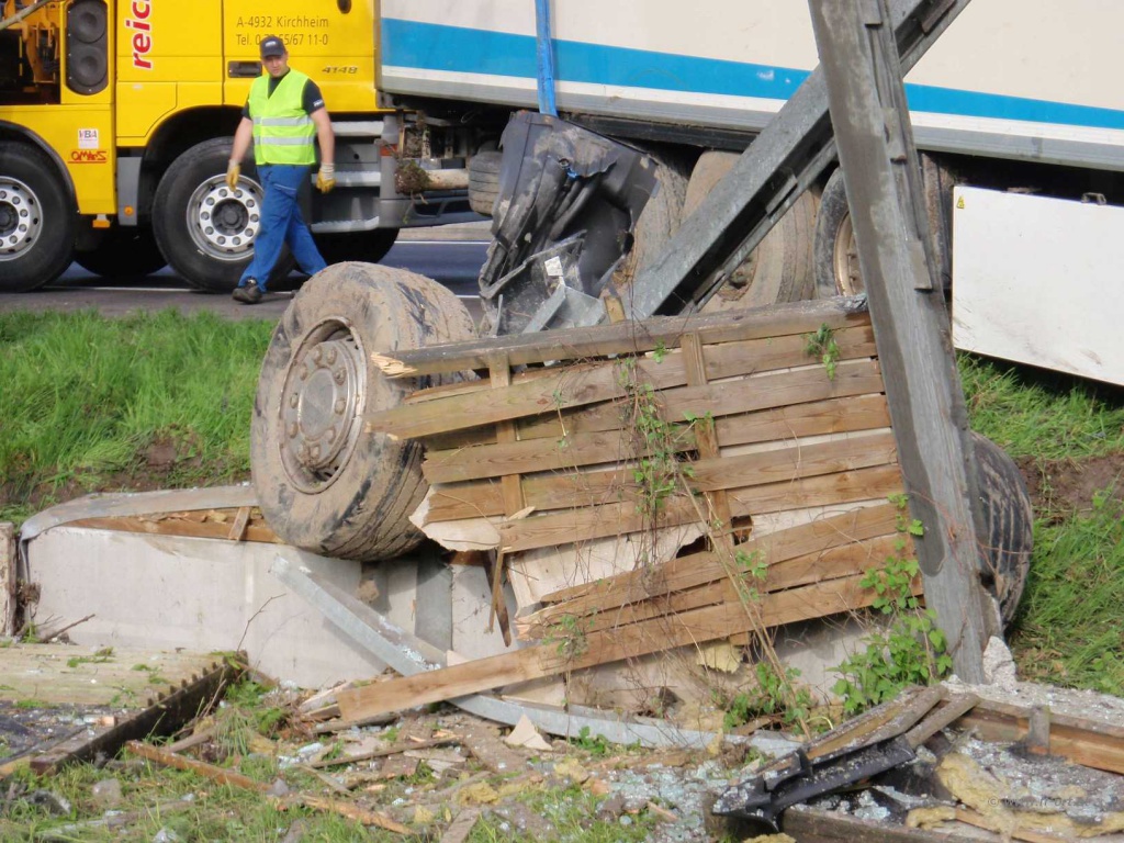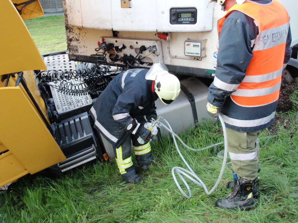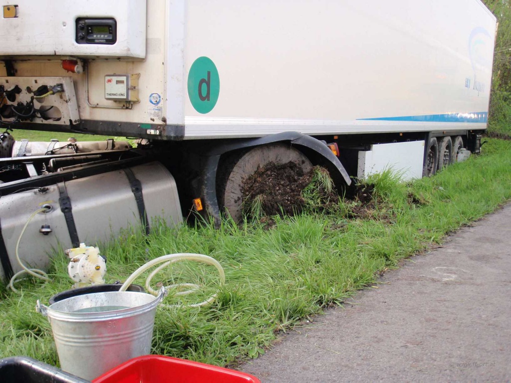 Nach Angaben des LKW Fahrers waren zum Unfallzeitpunkt die Dieseltanks voll, so dass ca. 700 Liter Diesel in das Erdreich gelangten. Nach Abschluss dieser Arbeiten begann die Fa. Reich mit Bergungsarbeiten.