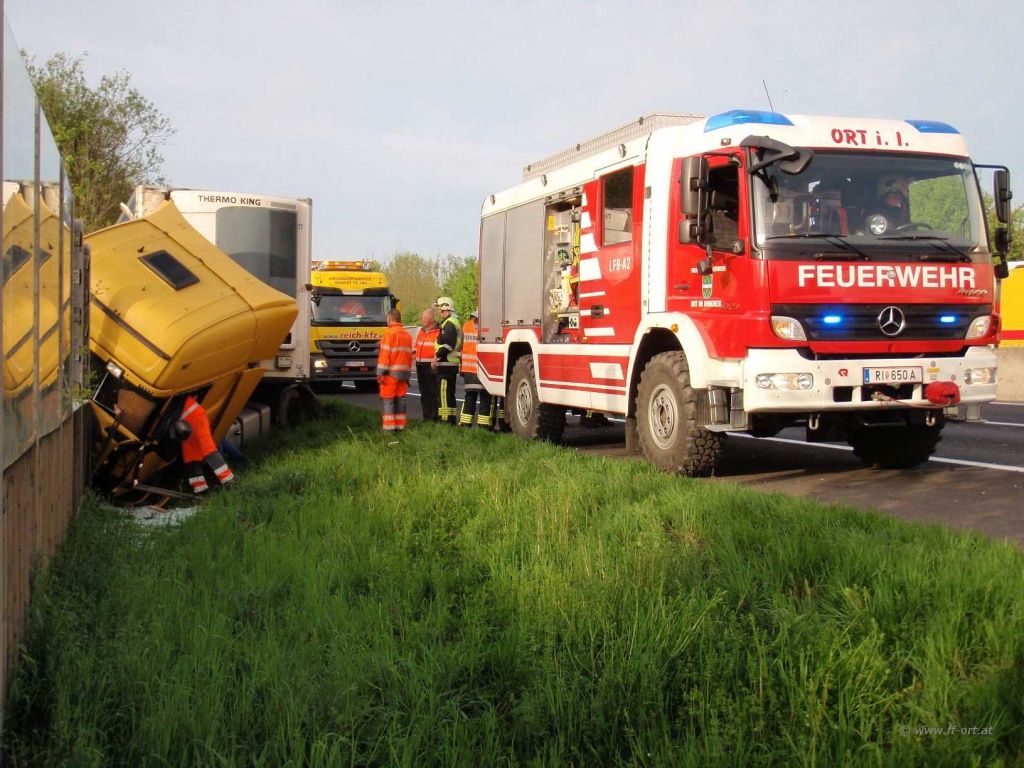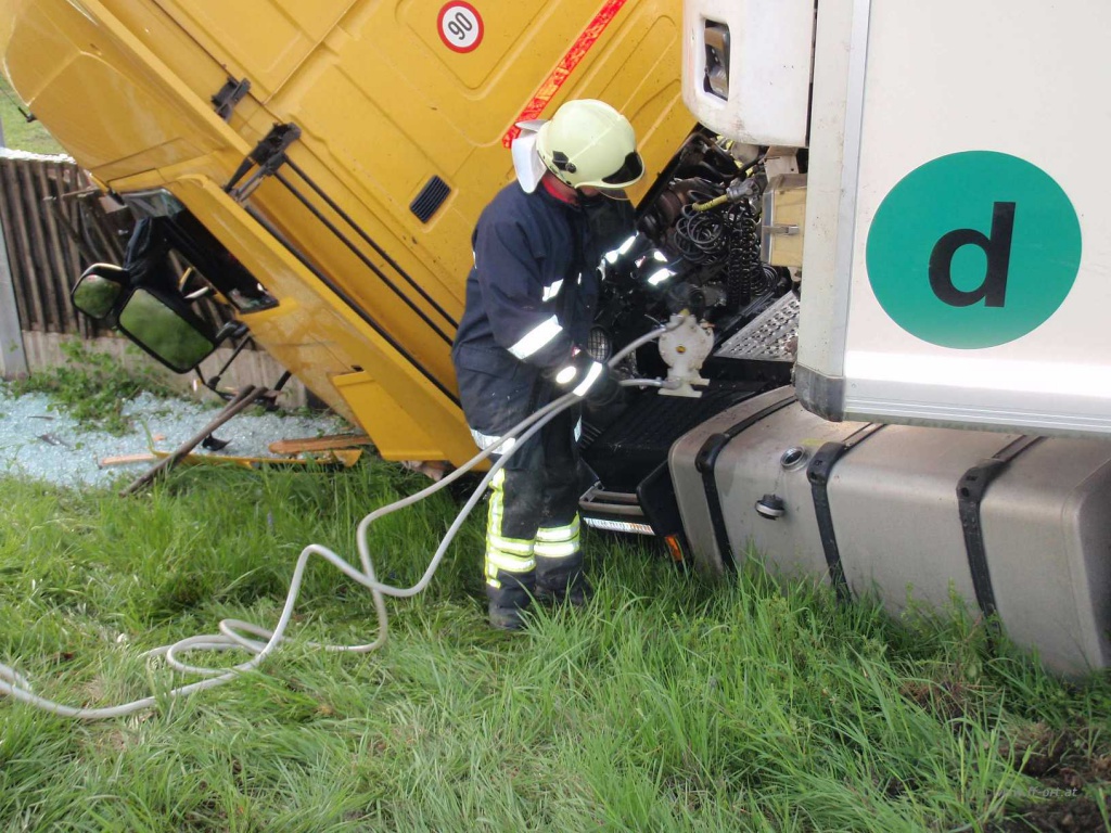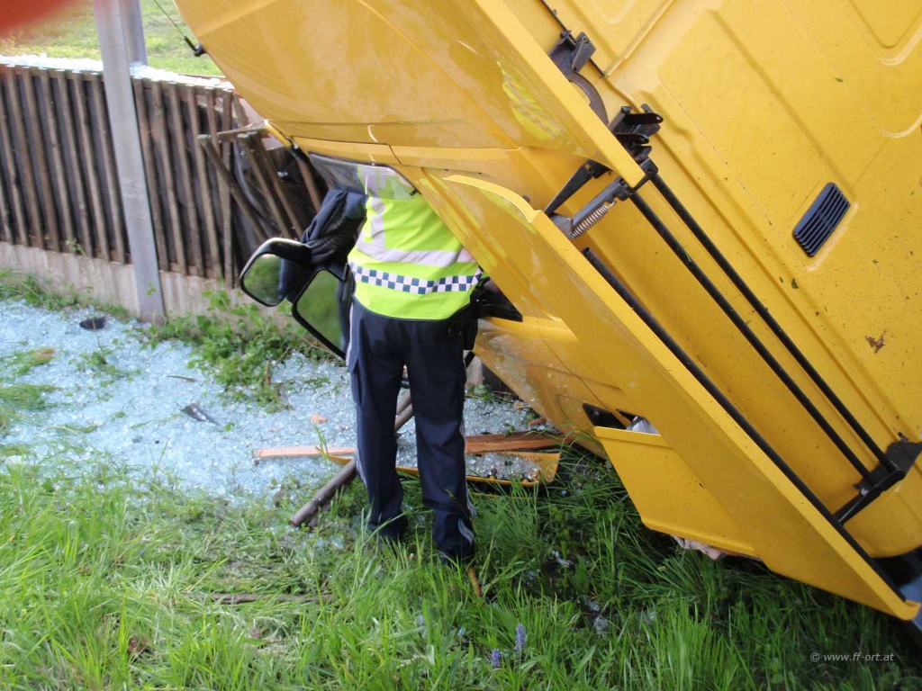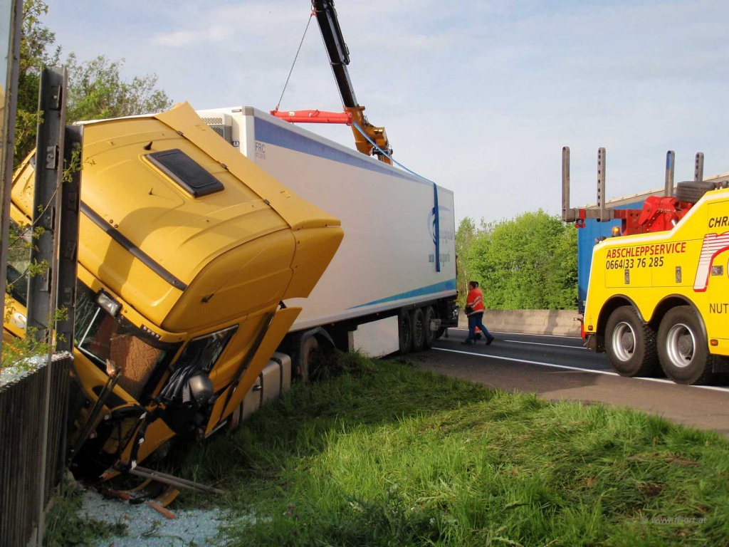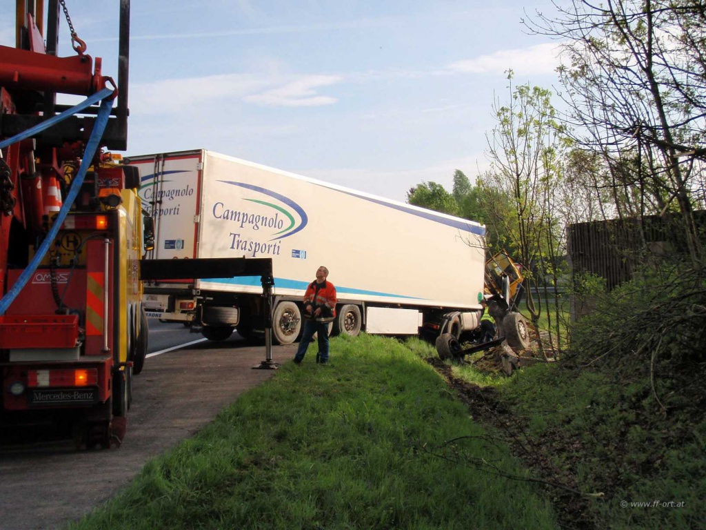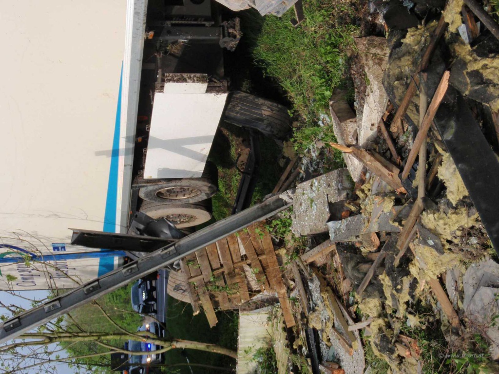 Nach Angaben des LKW Fahrers waren zum Unfallzeitpunkt die Dieseltanks voll, so dass ca. 700 Liter Diesel in das Erdreich gelangten. Nach Abschluss dieser Arbeiten begann die Fa. Reich mit Bergungsarbeiten.