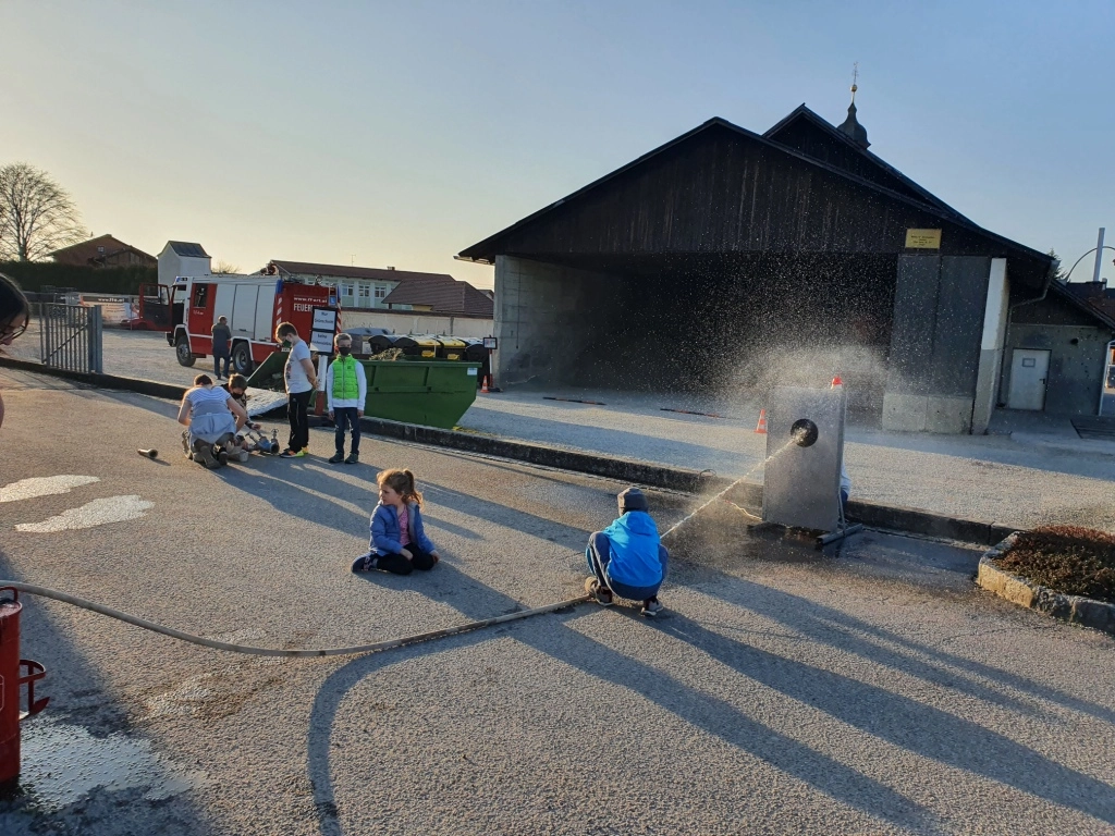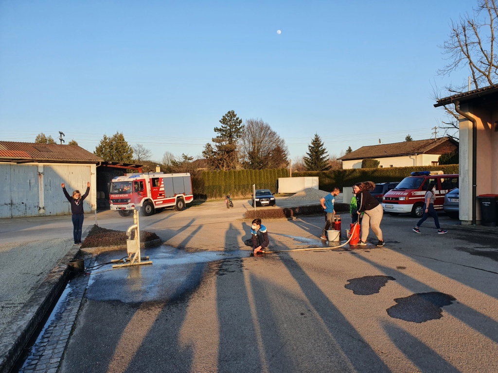 Die Kinder und Jugendlichen übten das Zielspritzen mit der Kübelspritze, erlernten und trainierten das Kuppeln