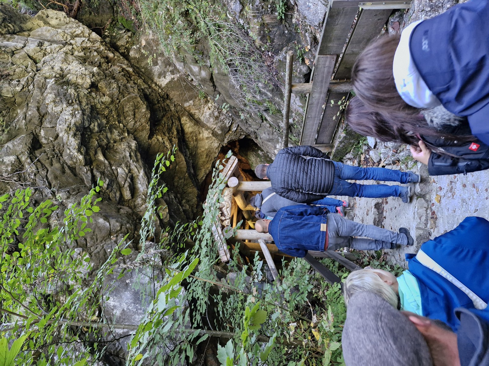 Gut gestärkt fuhren wir weiter nach Lofer, wo im Wirtshaus „Zum Schweizer“ ein genussvolles Mittagessen wartete. Danach stand eines der Highlights des Ausflugs auf dem Programm: die Besichtigung der Lamprechtshöhle. Die Höhle ist Teil eines der größten Höhlensysteme Österreichs. Im begehbaren Schauhöhlenbereich wurden etwa 700 m Wegstrecke über Stege und Treppen erkundet, mit rund 70 m Höhenunterschied zwischen Ein- und Aussichtspunkt. Der Blick von der Plattform gewährt eindrucksvolle Perspektiven auf die imposante Höhlenlandschaft.