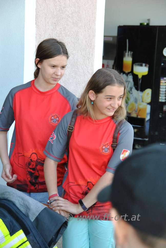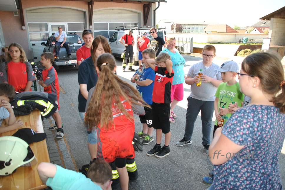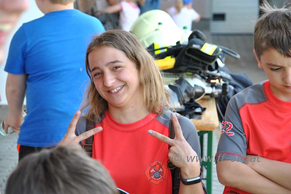 Es gab die Möglichkeit ins Einsatzgewand zu schlüpfen und die Atemschutzsachen zu inspizieren. Im Vordergrund stand natürlich das Jugendprobetraining. Bei sommerlichen Temperaturen durfte auch eine Wasserschlacht nicht fehlen und zum Abschluss gab es noch Eis für alle.