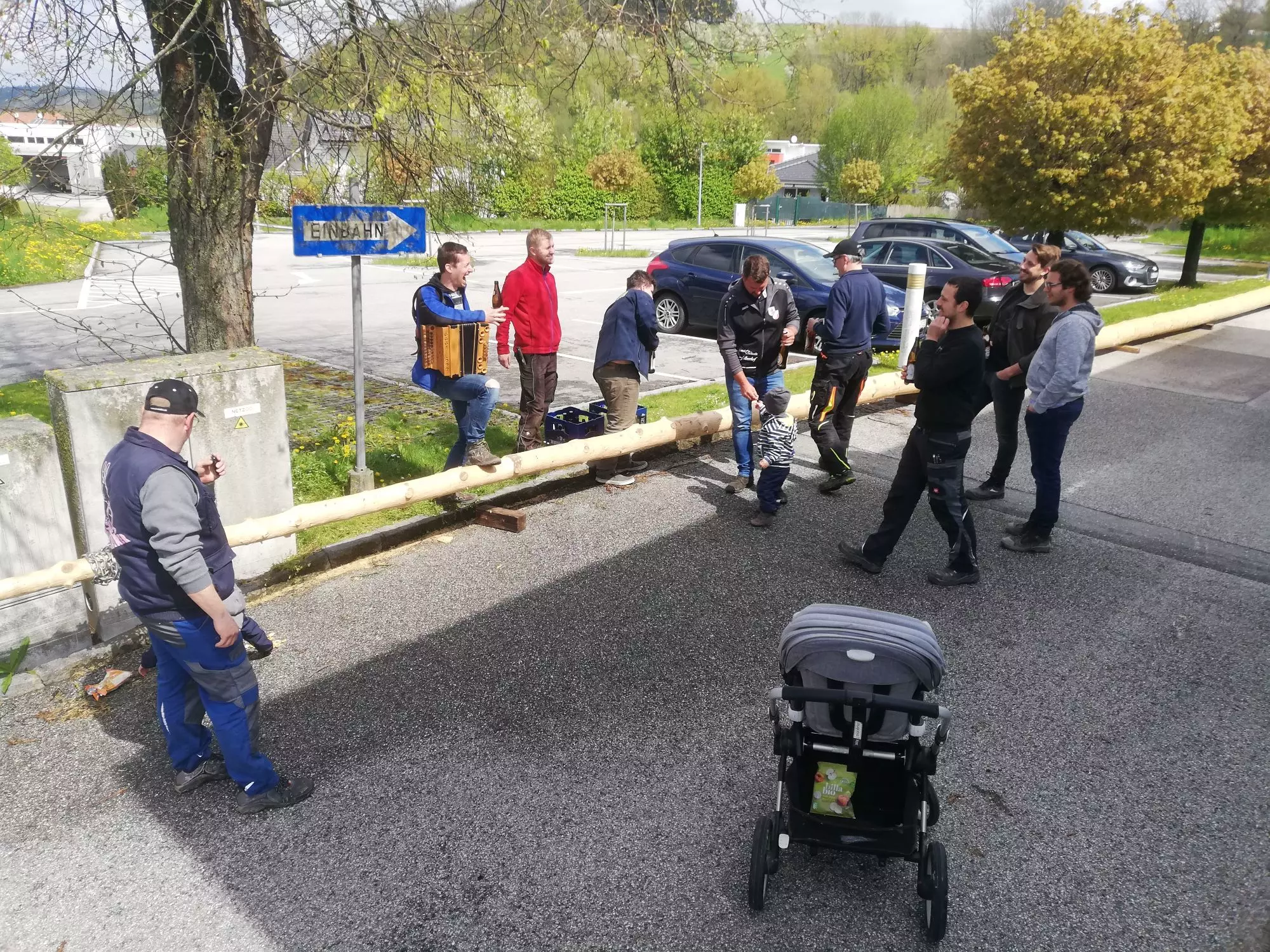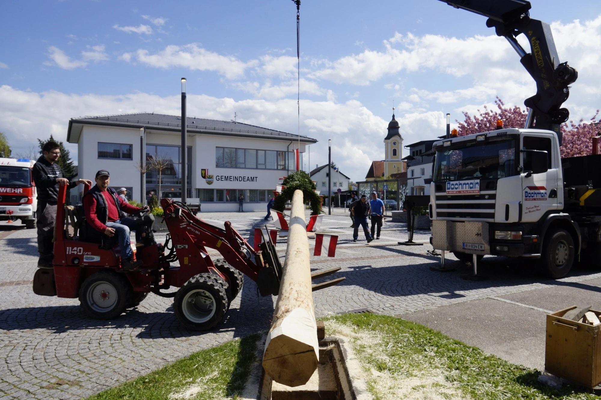 wurde der Maibaum mit musikalischer Umrahmung schließlich zum Ortsplatz verbracht und dank vieler fleißiger Helfer am 29.04. aufgestellt.