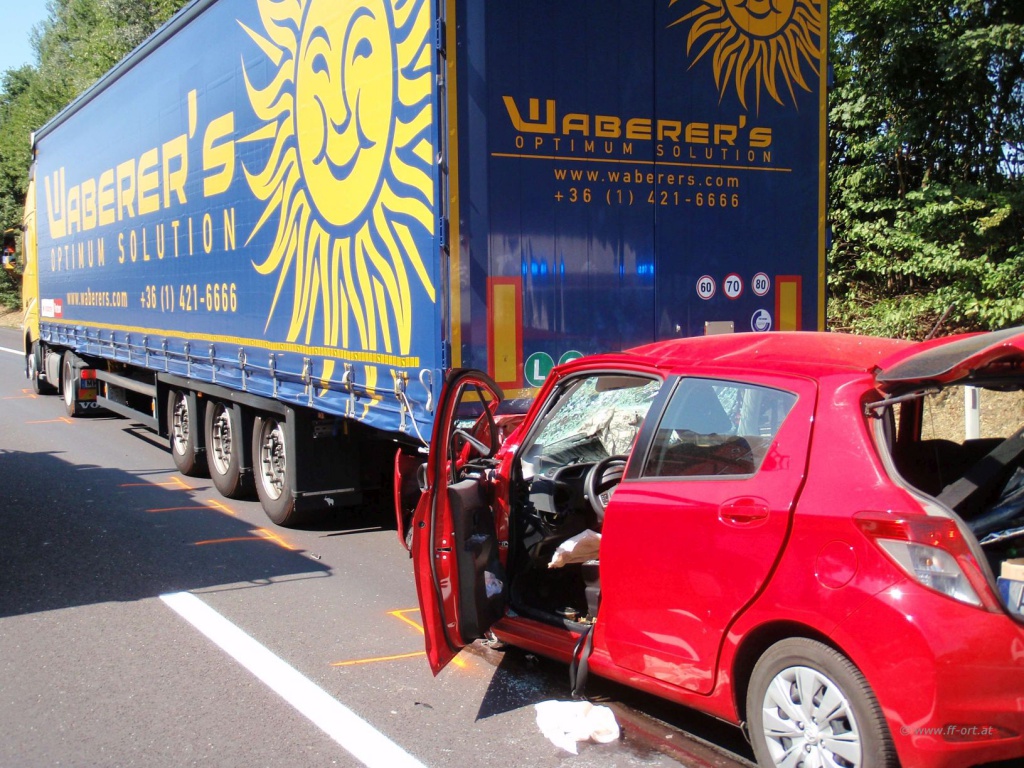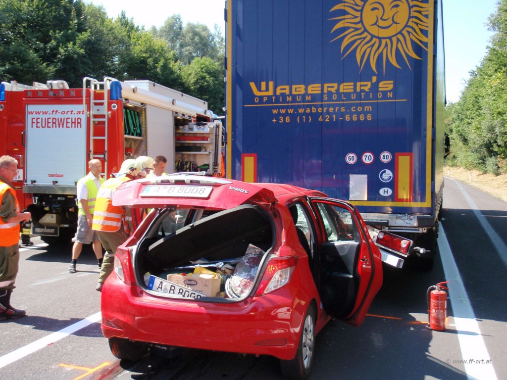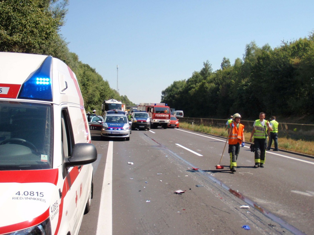 Aufgrund des Rückstaues auf der Innkreisautobahn A8 Fahrtrichtung Suben ist nach dem ersten Einsatz ein weiterer Unfall passiert. Ein Pkw fuhr auf einen Lkw auf.