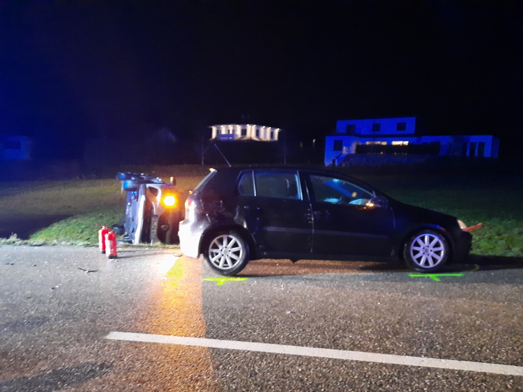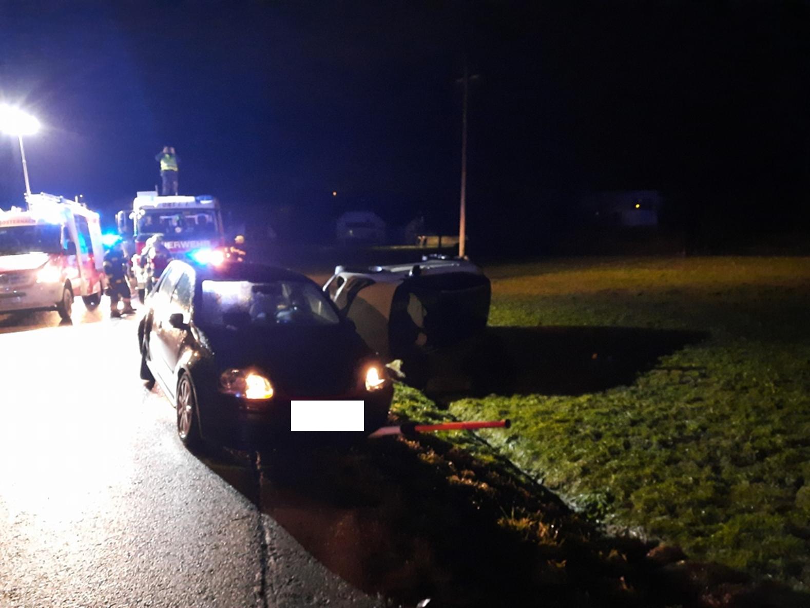 Ein entgegenkommender PKW versuchte noch geistesgenwärtig auszuweichen, kam dabei jedoch von der Fahrbahn ab, überschlug sich und blieb auf der Seite liegen.