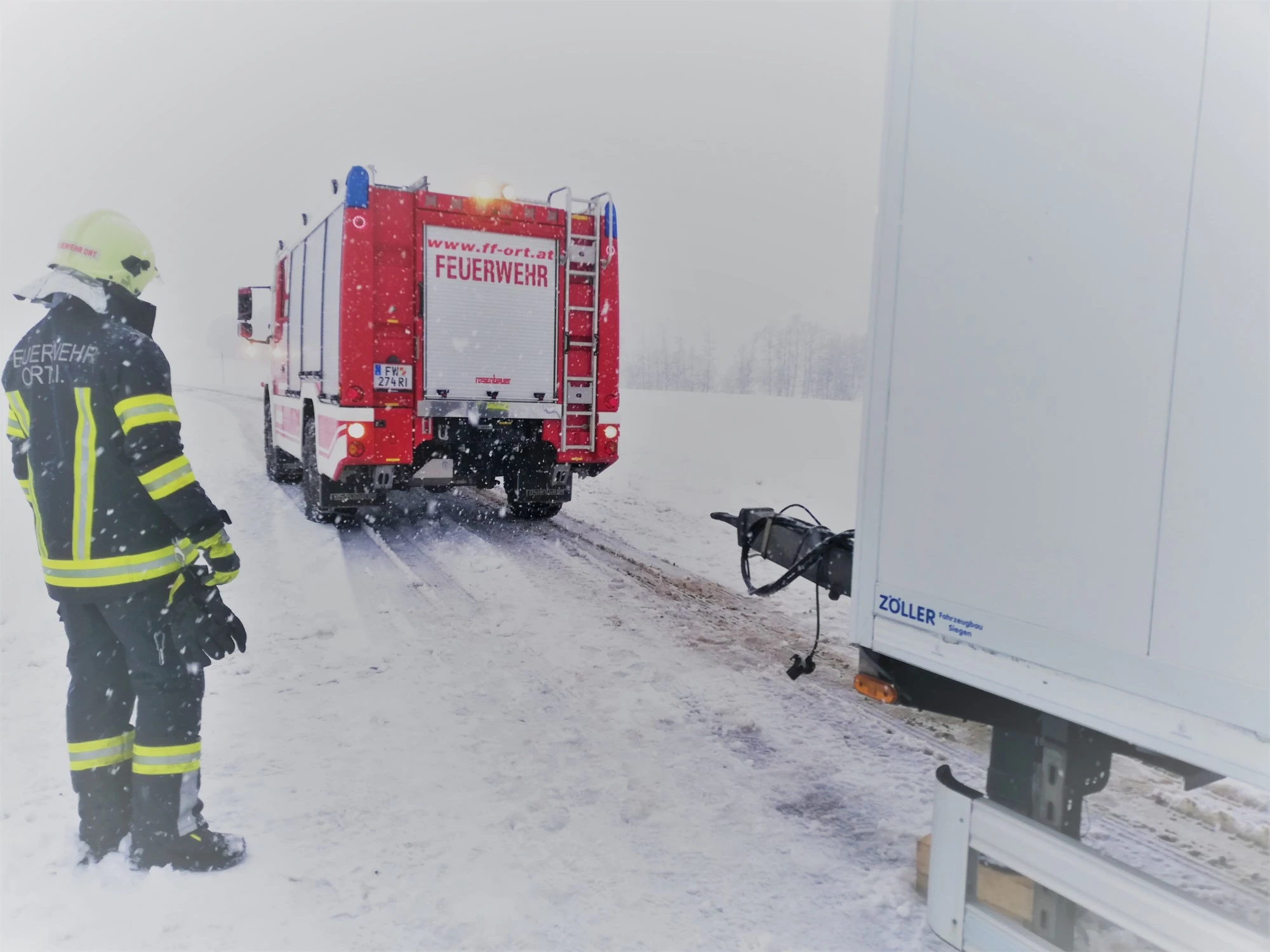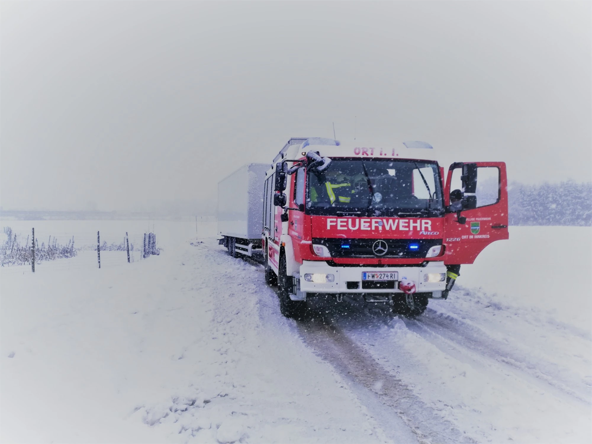 Zu einer LKW-Bergung auf der Osternacher Bezirksstraße L1112 in Richtung St. Martin, wurde die FF Ort am 02.02.23 um kurz nach 14 Uhr alarmiert.