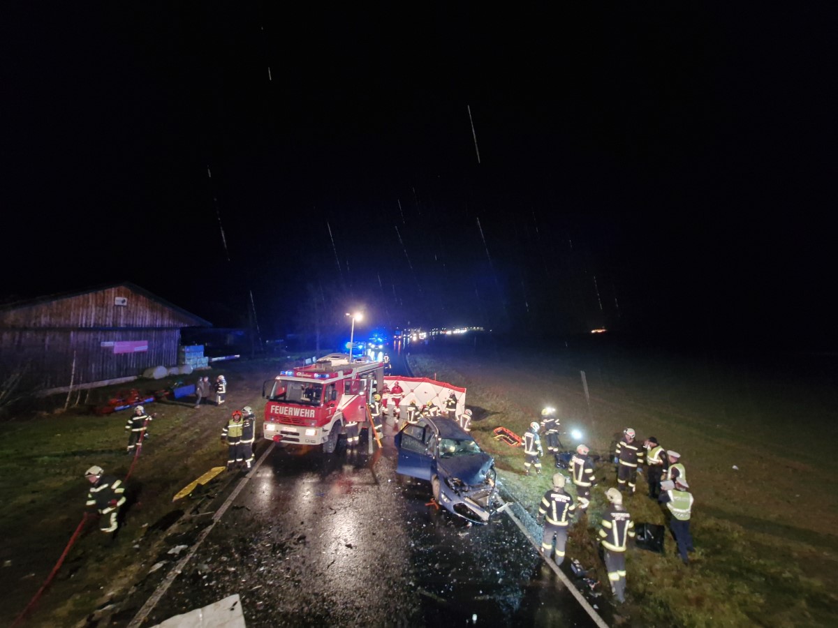 Am Montag, den 09.12.2024, wurden die Feuerwehren Ort, Münsteuer und Reichersberg gegen 19:45 Uhr zu einer Personenrettung nach Verkehrsunfall auf der B148 bei Fraham, Gemeindegebiet Reichersberg, alarmiert.