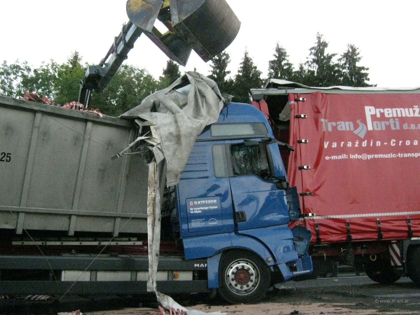 Auf der A8 Innkreisautobahn bildete sich am 5. Oktober 2015 gegen 14:40 Uhr bei Reichersberg, in Fahrtrichtung Suben ein ca. neun Kilometer langer Stau. Ein Lastwagen fuhr auf eine stehende Lkw-Kolonne auf, wodurch insgesamt fünf Laster schwer beschädigt, zwei Fahrer schwer und ein Fahrer leicht verletzt wurden. Zwei Kraftfahrer mussten mittels Bergeschere befreit werden. Die Autobahn war wegen Bergungs- und Aufräumarbeiten etwa neun Stunden gesperrt. Dieser Einsatz forderte unsere Einsatzkräfte enorm. Dieser Einsatz war nicht nur eine physische Belastung, sondern führte die Einsatzkräfte auch an ihre psychischen Grenzen.