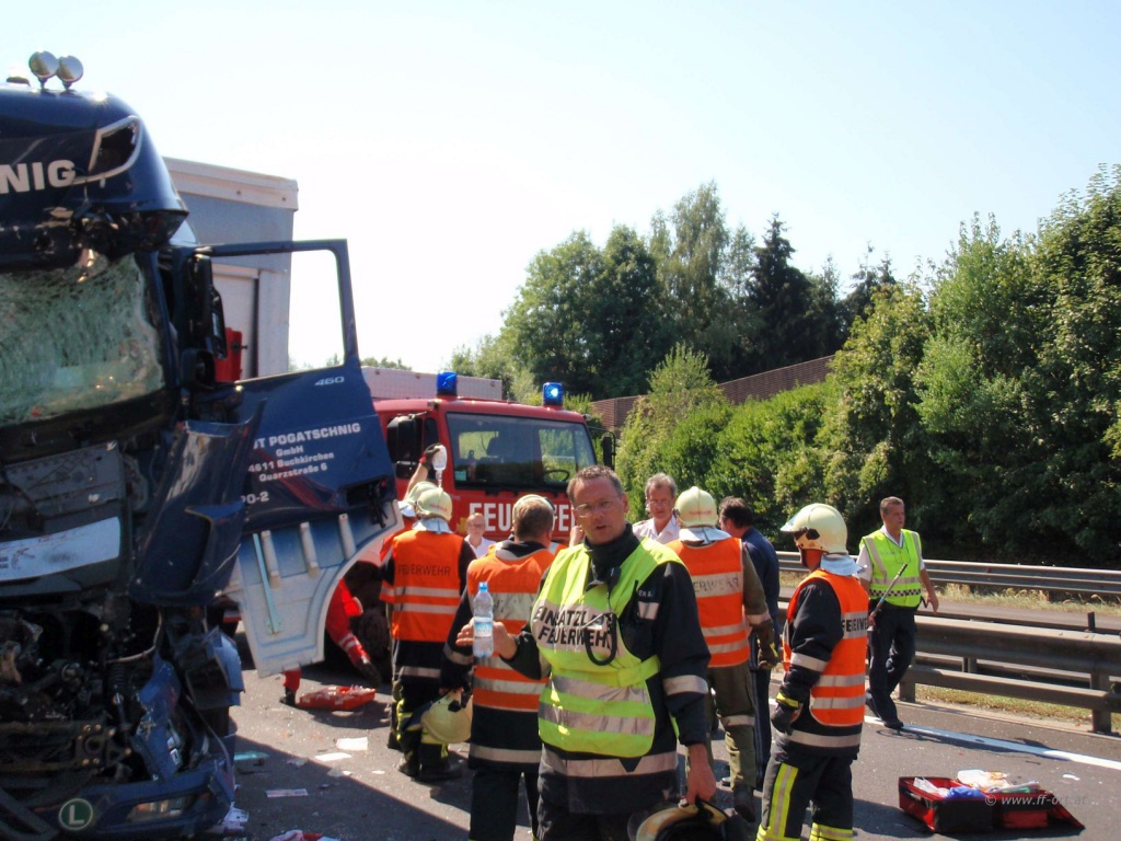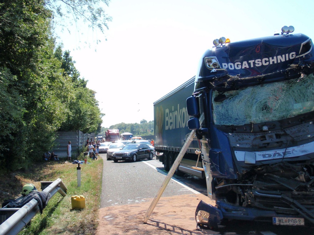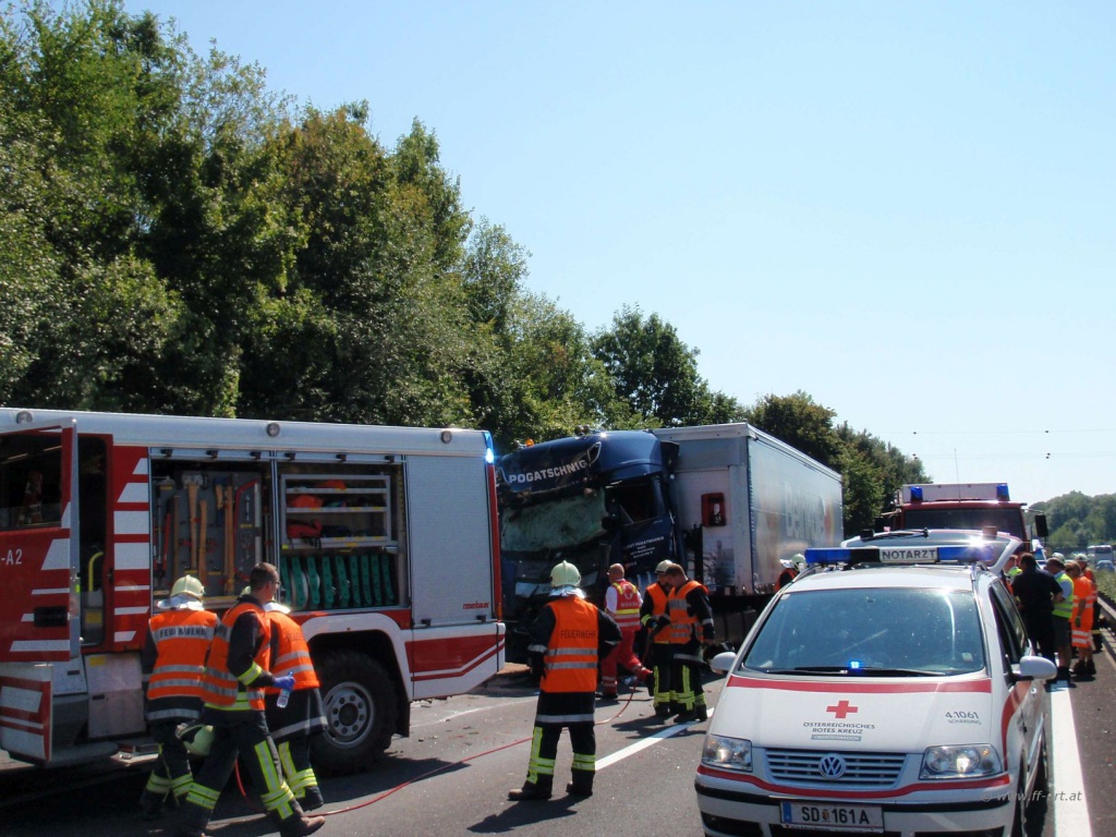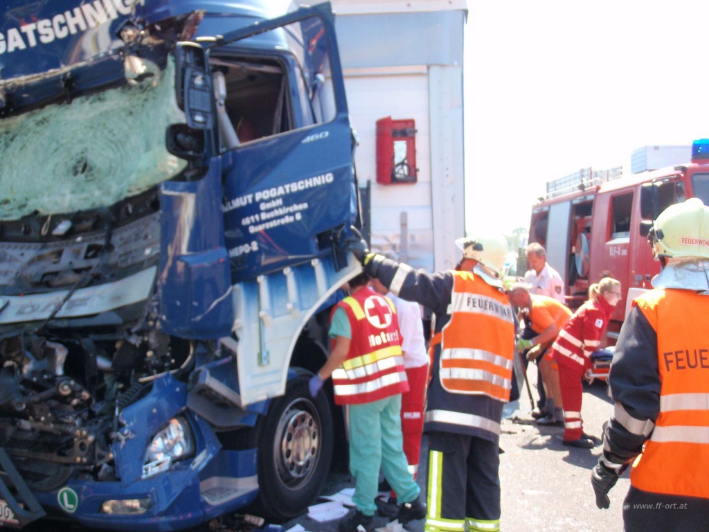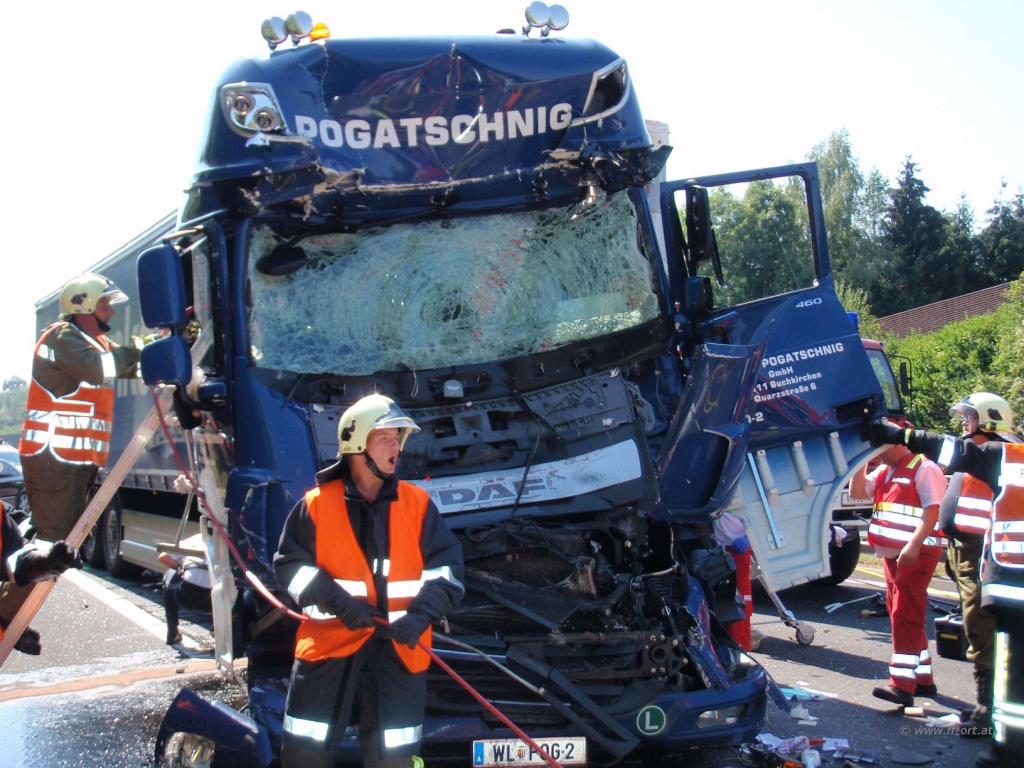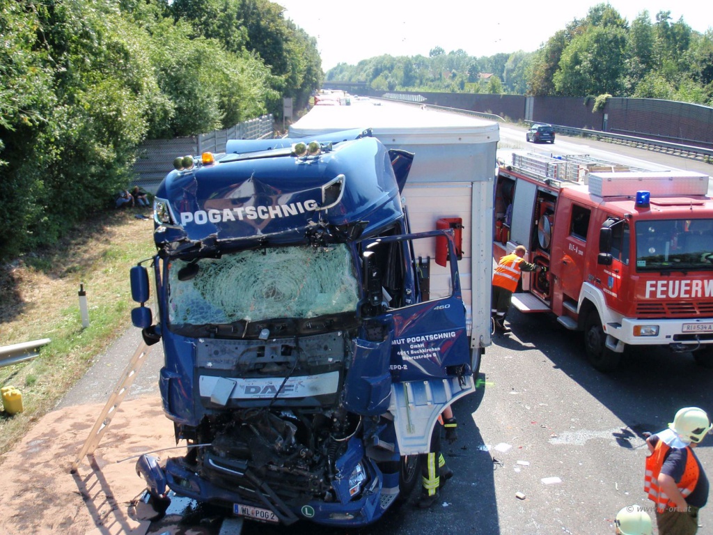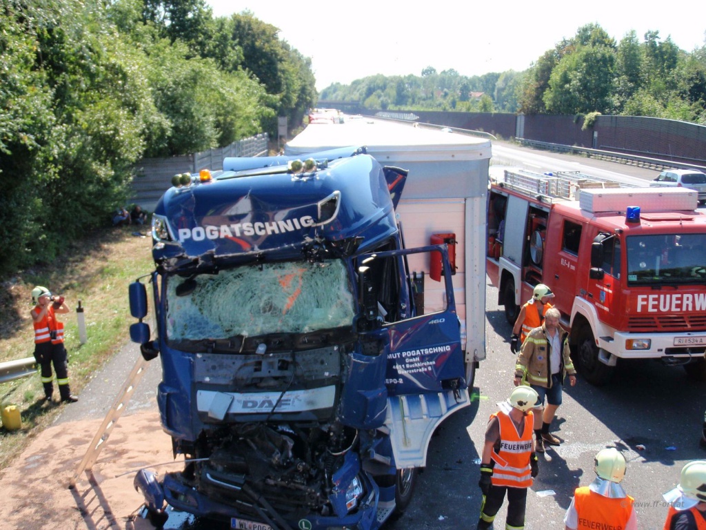 Unfall A8 mit 2 Lkws - eingeklemmte Person
