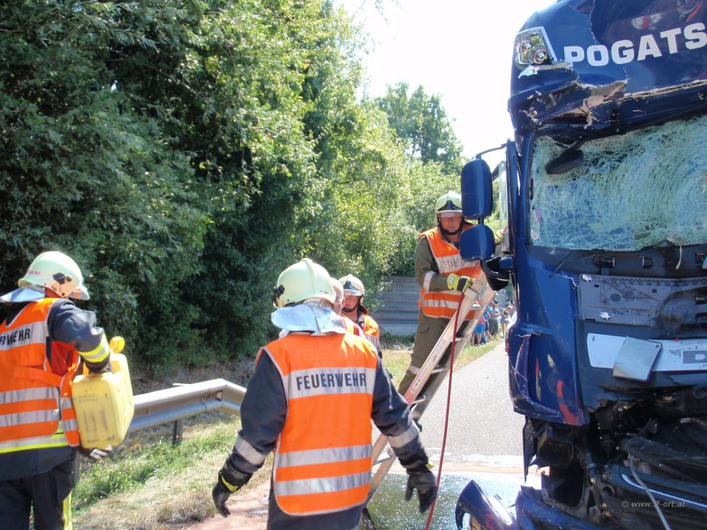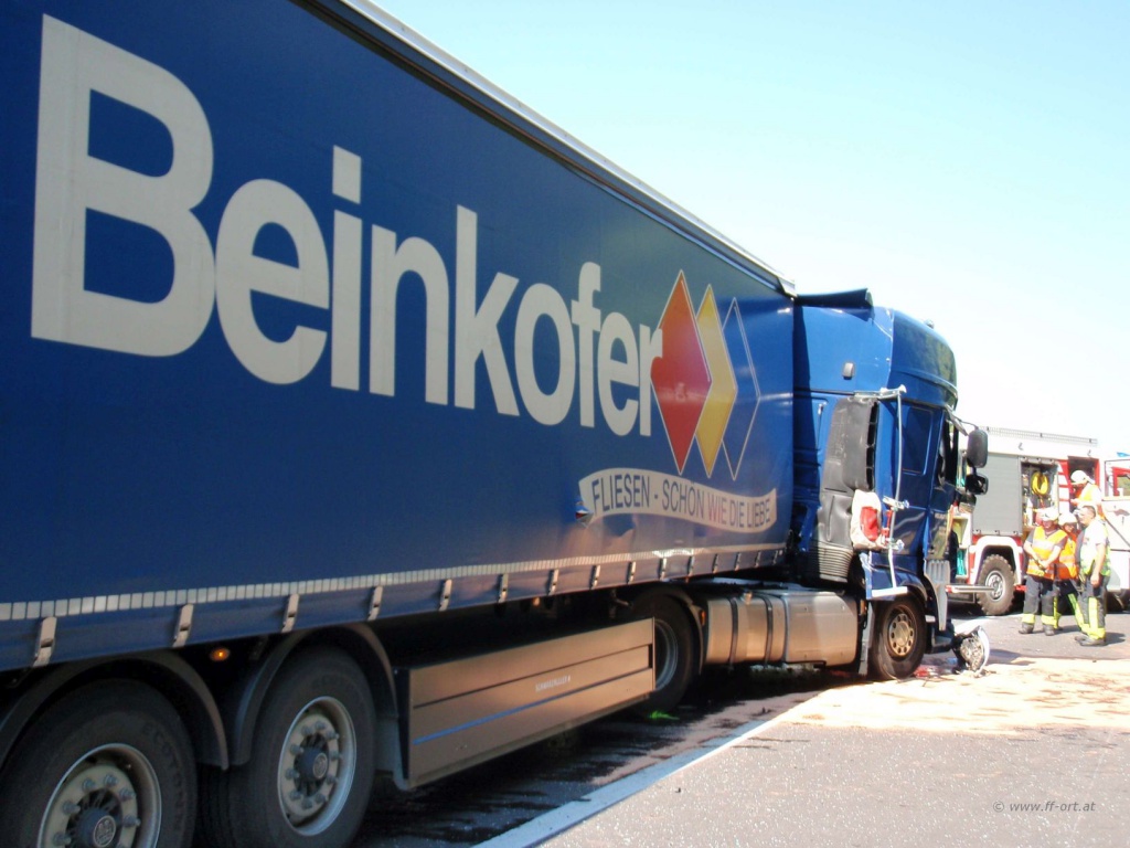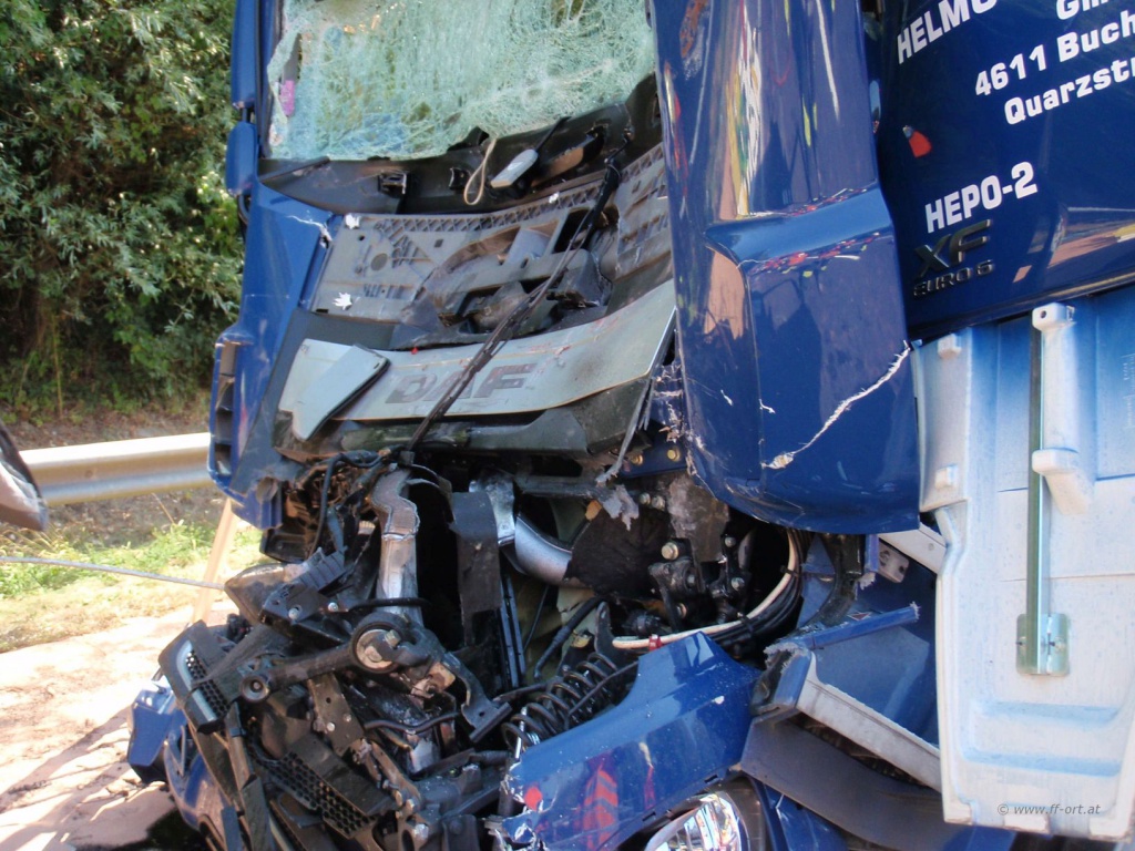 Ein Lkw-Fahrer wurde eingeklemmt. Gemeinsam mit der Feuerwehr Antiesenhofen wurde der Einsatz bewältigt.