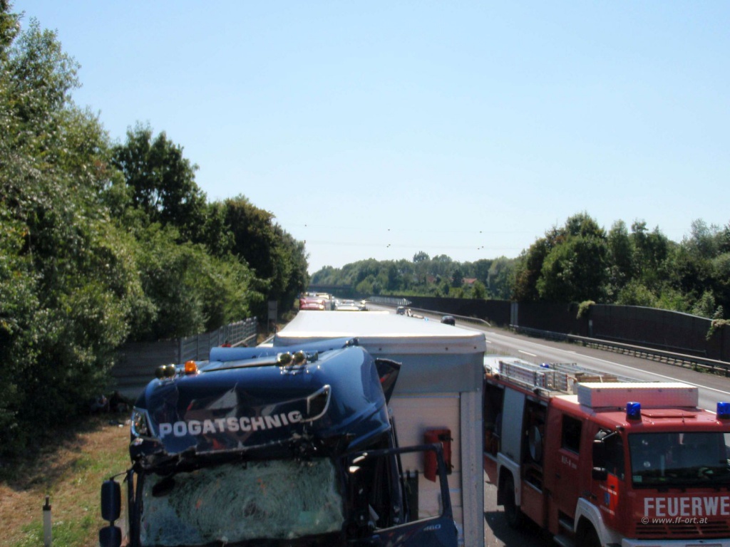 Auf der Innkreisautobahn A8 ereignete sich gegen 12:30 Uhr ein Unfall mit 2 Lkw's.