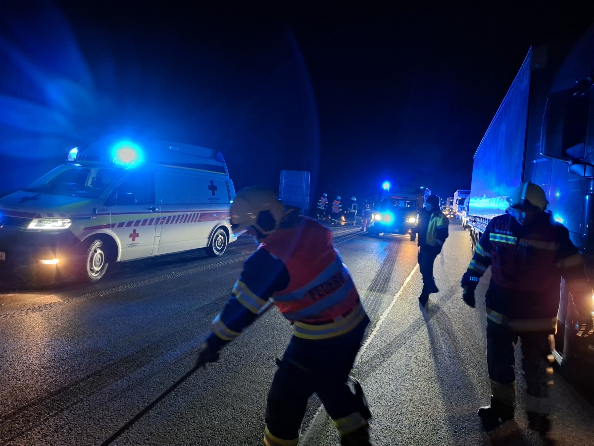Am Dienstagabend den 18.02.2025 wurden wir gemeinsam mit der Freiwillige Feuerwehr Antiesenhofen zu einer Personenrettung nach einem Verkehrsunfall auf der A8 alarmiert. Ein 31-jähriger Autofahrer hatte aufgrund einer Reifenpanne auf dem Pannenstreifen angehalten und war beim Verlassen seines Fahrzeugs von einem Lkw erfasst und schwer verletzt worden.