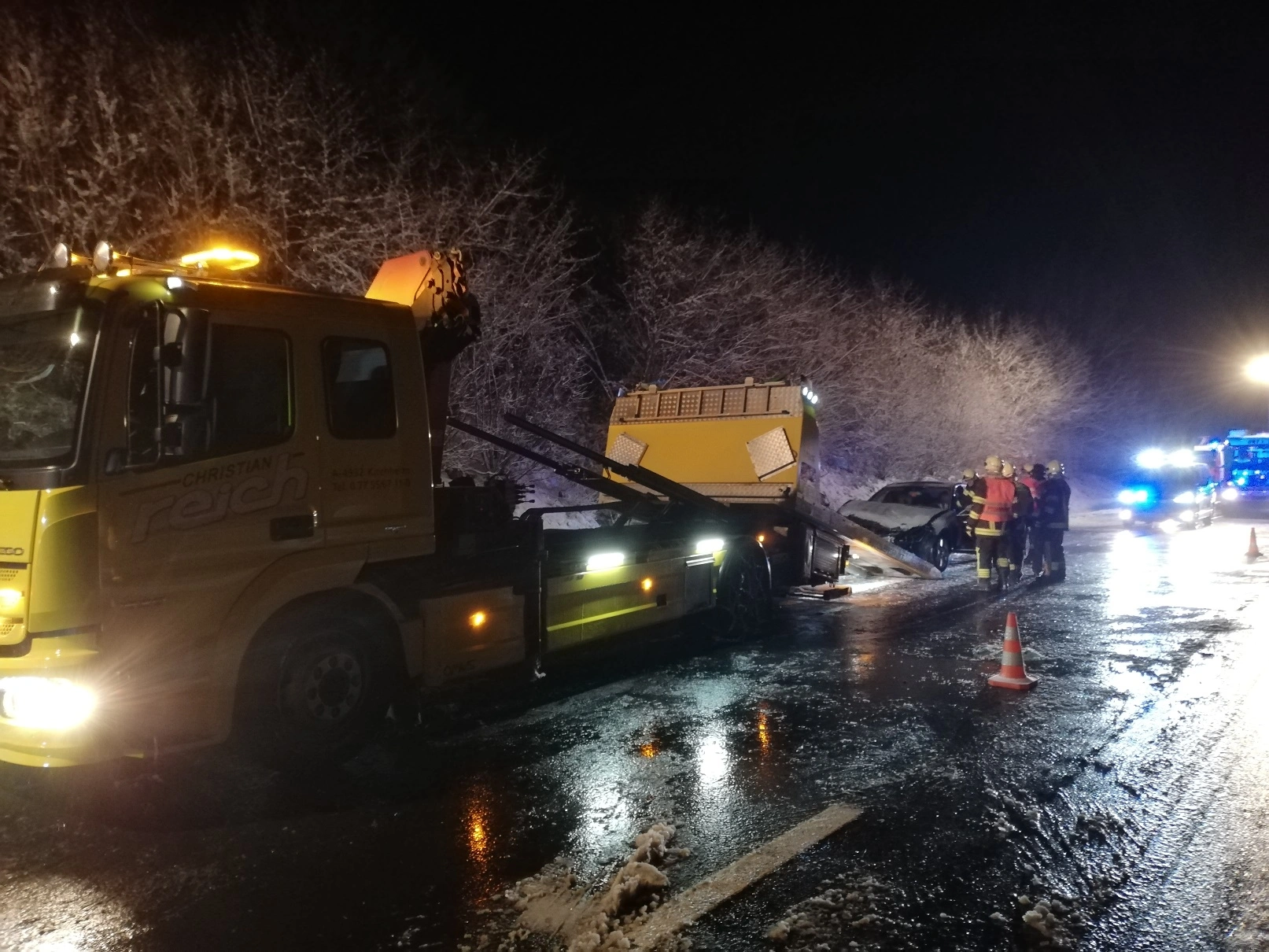 Während der Bergungsarbeiten der beschädigten Fahrzeuge durch ARBÖ und das Abschleppunternehmen Reich, unterstützten die Feuerwehren beim Verladen, sowie Entfernen von Trümmerteilen und Reinigen der Fahrbahn.