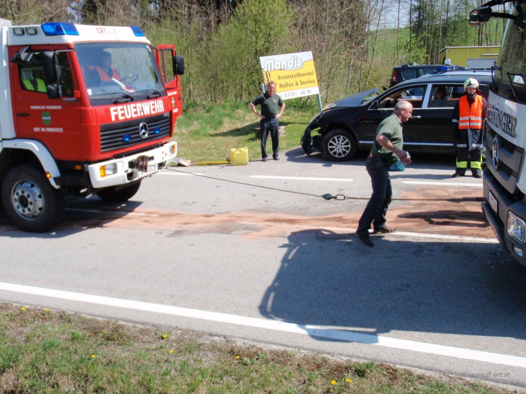 Aufräumarbeiten nach Verkehrsunfall am 20. April