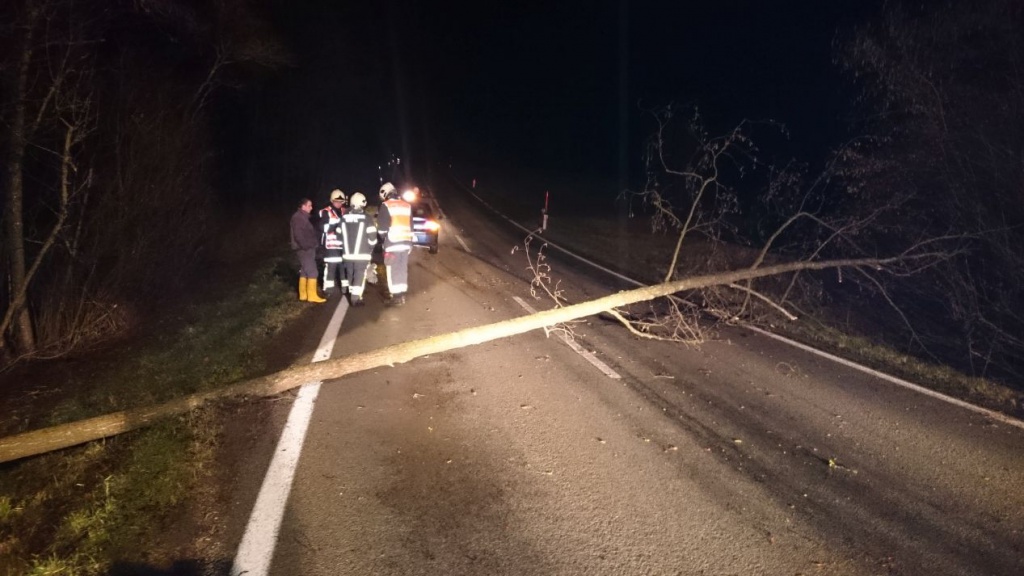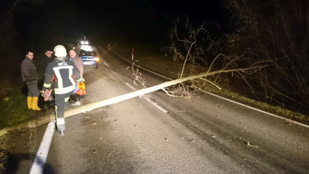 Aufräumarbeiten nach Verkehrsunfall ausgelöst durch Sturm am 8. Februar