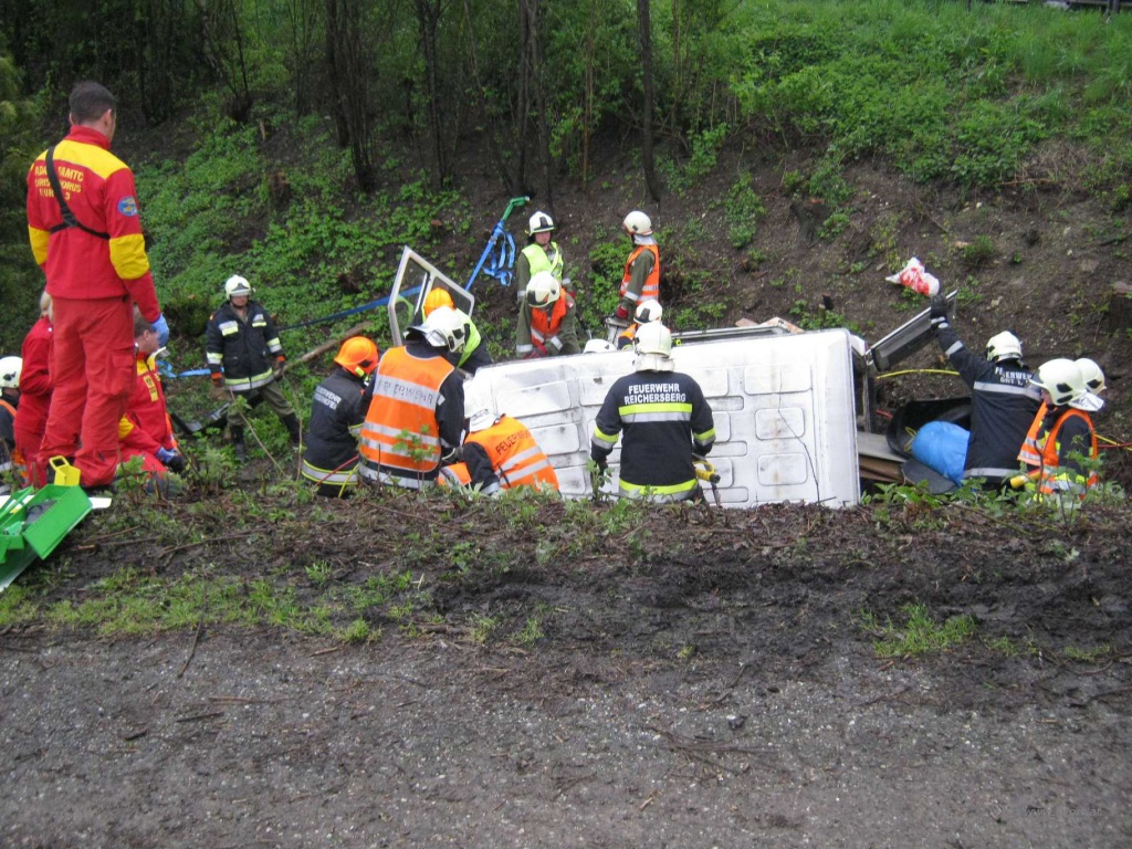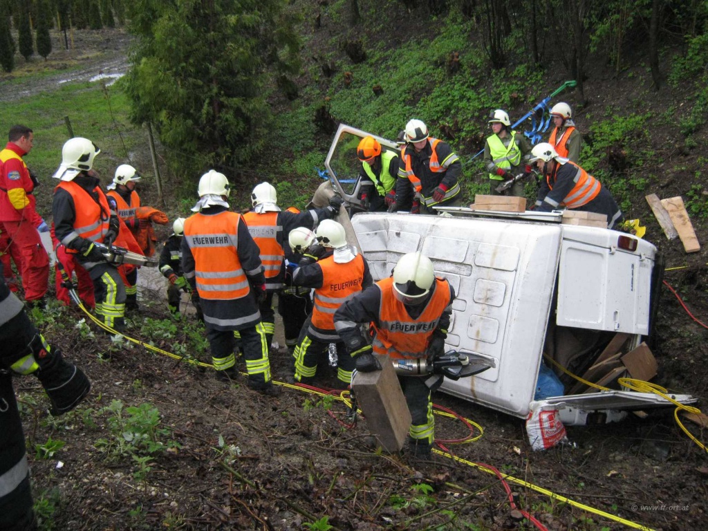 Aufgrund der Fahrzeuglage und des steilen Geländes stellten die Rettungsmaßnahmen eine große Herausforderung dar.