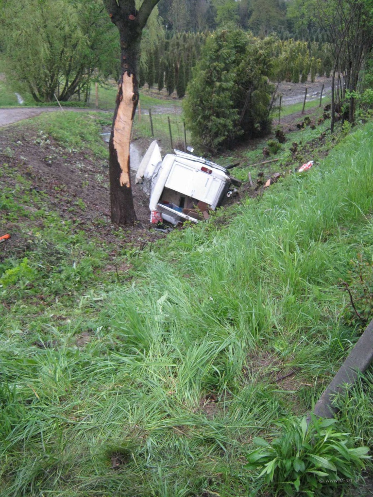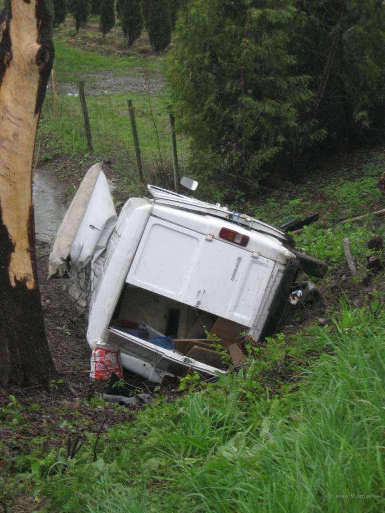 Der Fahrer des Kleintransportes wurde mit dem Rettungshubschrauber ins Krankenhaus gebracht.
