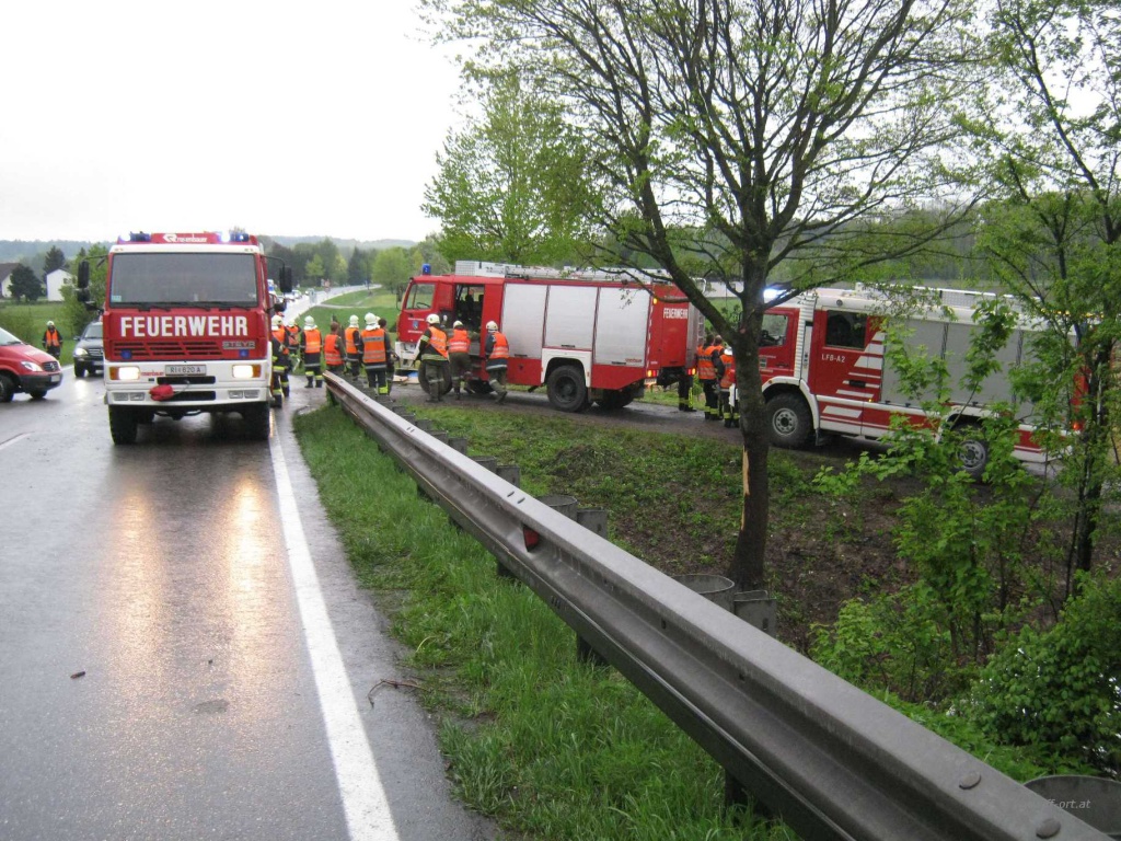 Während der Anfahrt zum Einsatzort stellte sich jedoch heraus, dass sich der Unfall auf der B148 im Bereich Hart ereignete und da wir uns bereits auf der Autobahn befanden, wurde die Feuerwehr Reichersberg mit dem Bergegerät nachalarmiert.