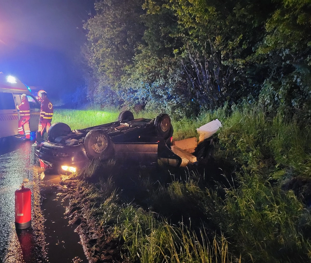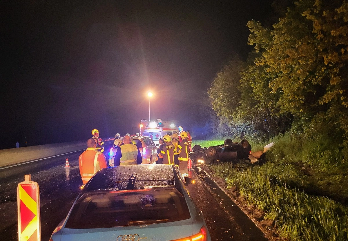 In Fahrtrichtung Voralpenkreuz Höhe Osternach, kam ein PKW von der Fahrbahn ab, überschlug sich mehrfach im Bankett und kam auf dem Dach liegend zum Sillstand.