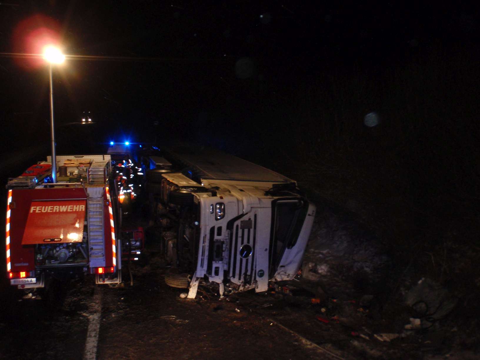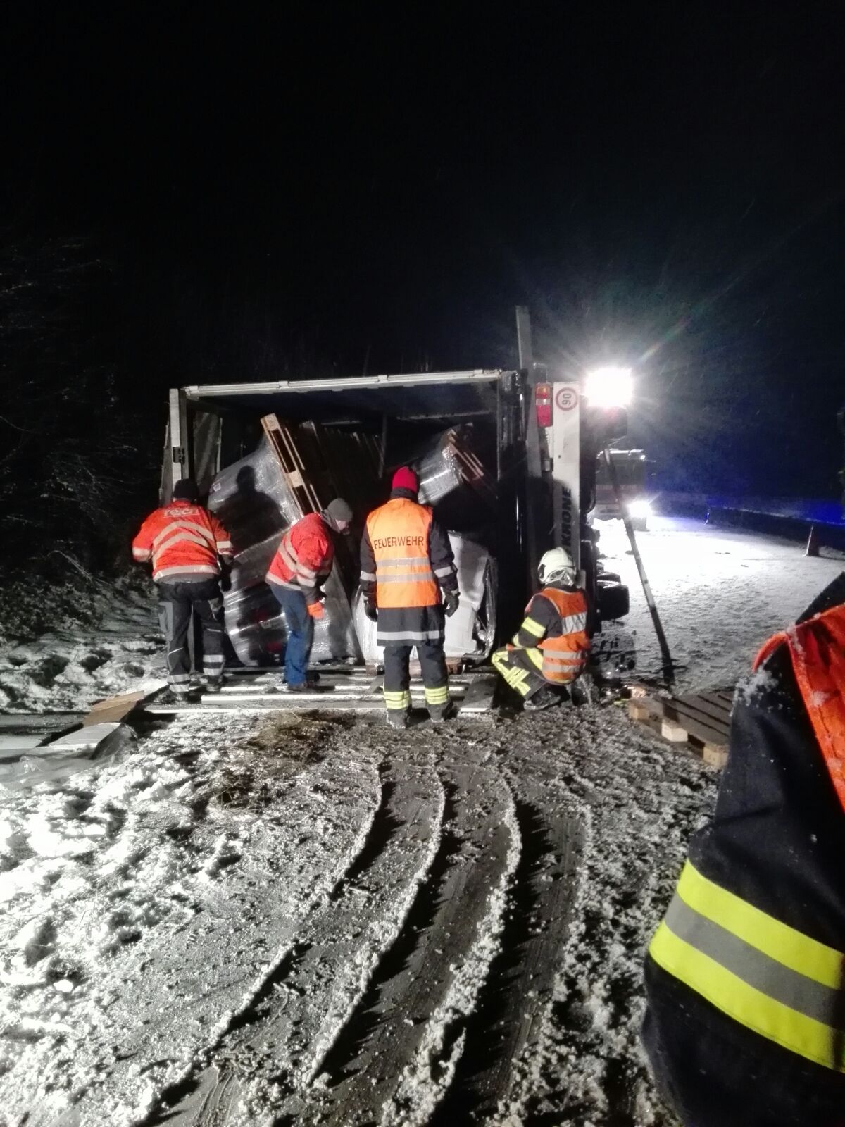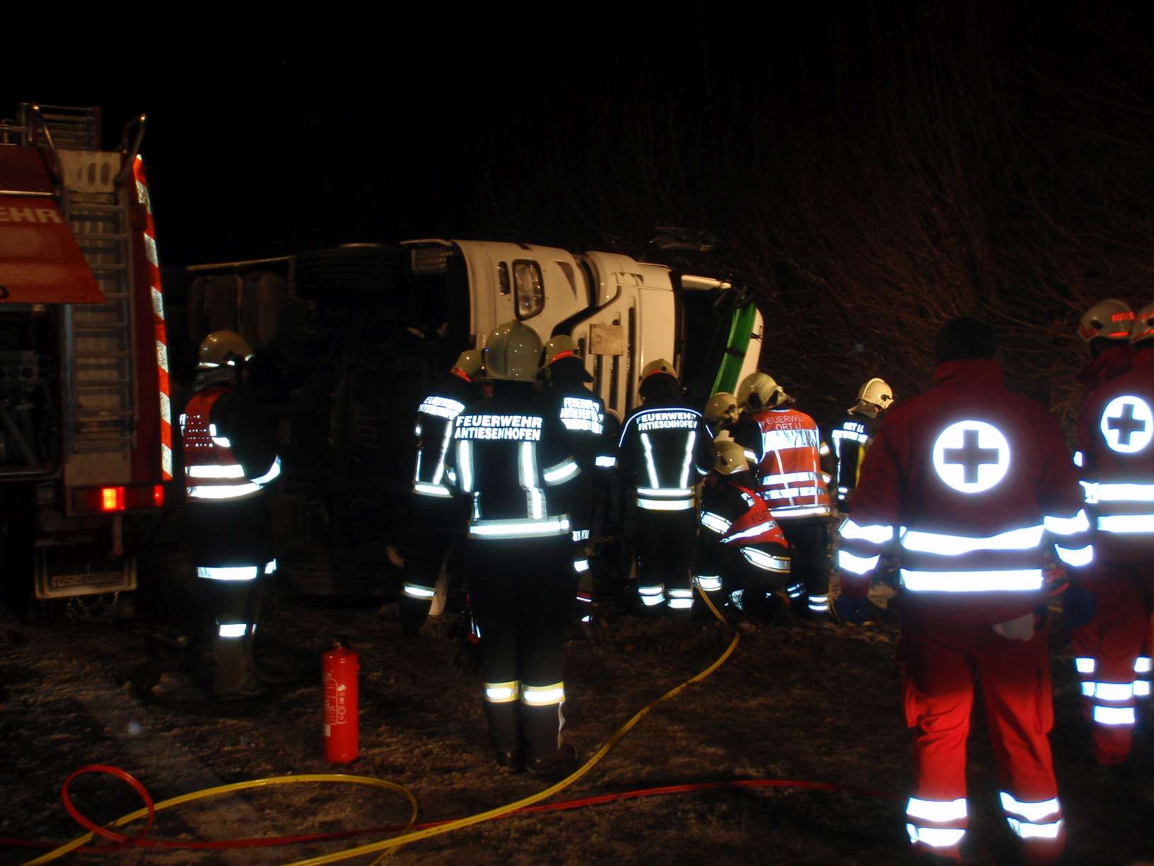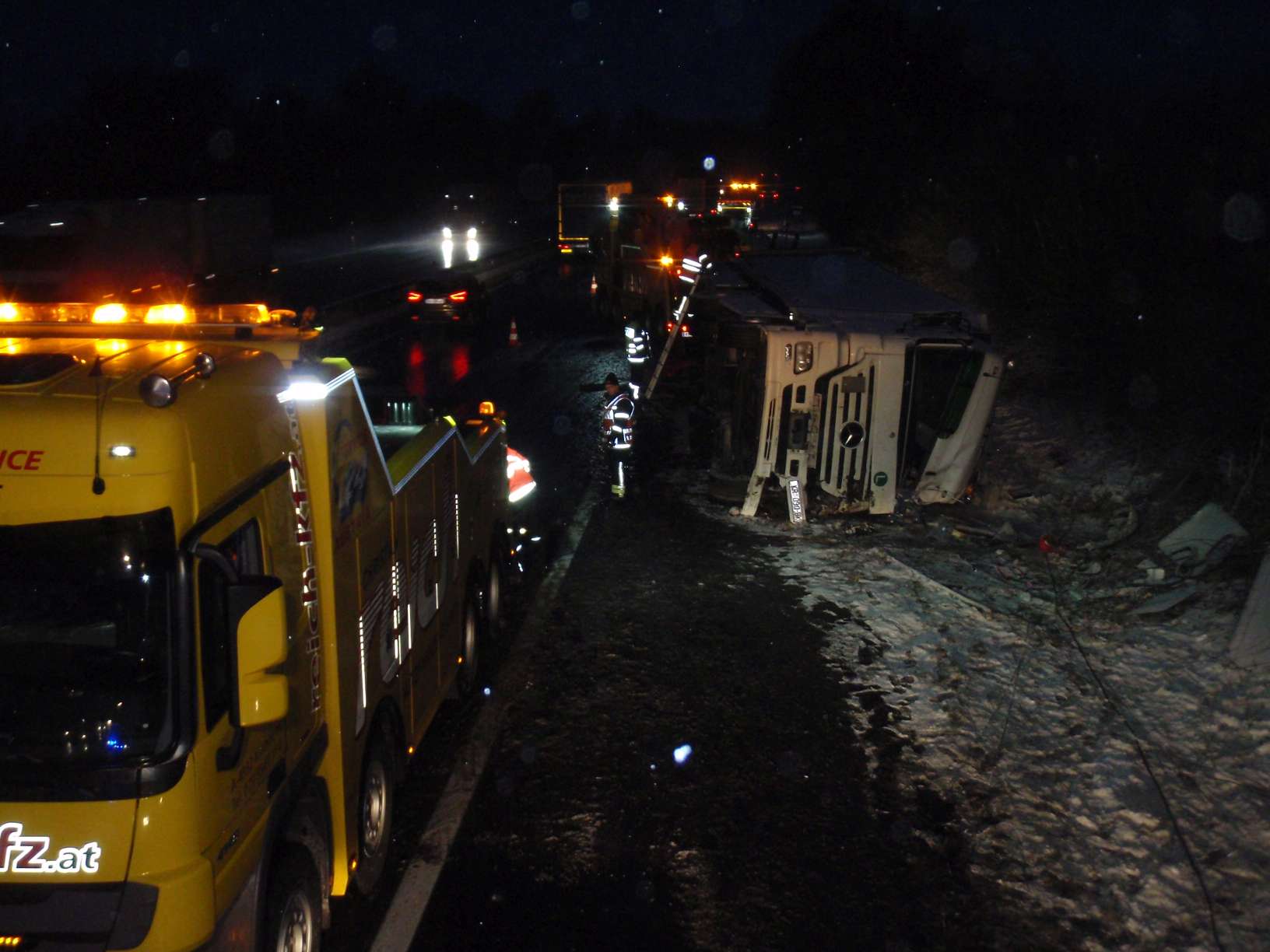 Ein schwerer Unfall mit einem Sattelschlepper ereignete sich am 16. Jänner 2017 um 3 Uhr auf der Autobahn A8. In Fahrtrichtung Suben kam das Fahrzeug ins Schleudern, kippte um und kam auf der Fahrerseite zum Liegen. Der Lenker war im Führerhaus eingeklemmt und auch der Beifahrer befand sich noch darin, als wir gemeinsam mit der Feuerwehr Antiesenhofen am Unfallort eintrafen. Es ist niemand stehen geblieben und auch der Unfallort war nicht abgesichert, klagte unser Kommandant Bernhard Ranseder. Nach der Befreiung der Personen unterstützten wir noch das angeforderte Unternehmen beim Aufräumen der Unfallstelle.