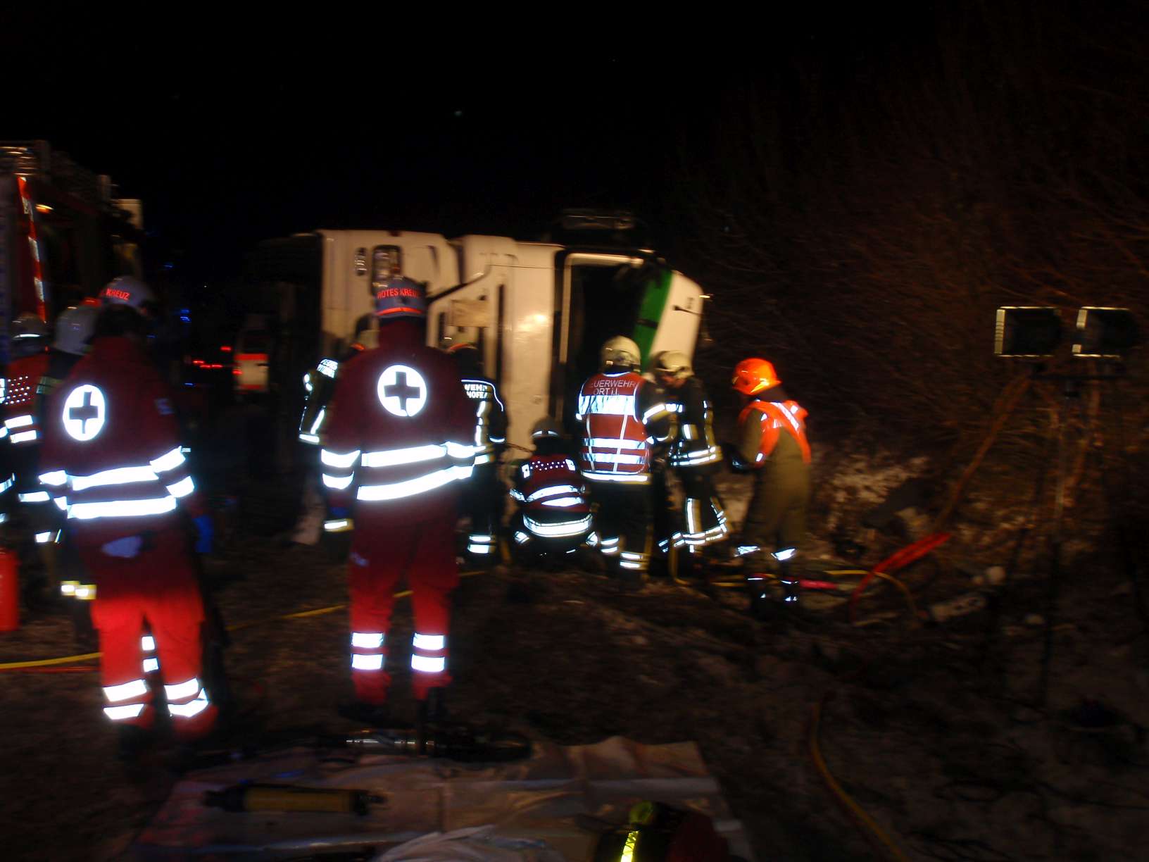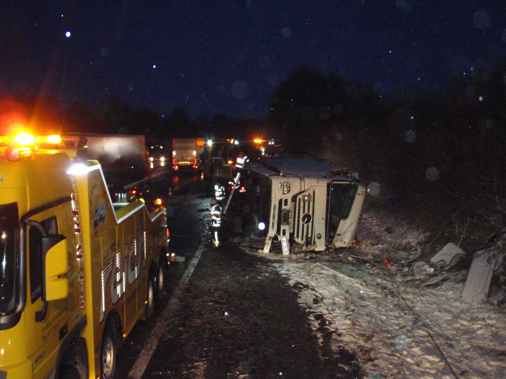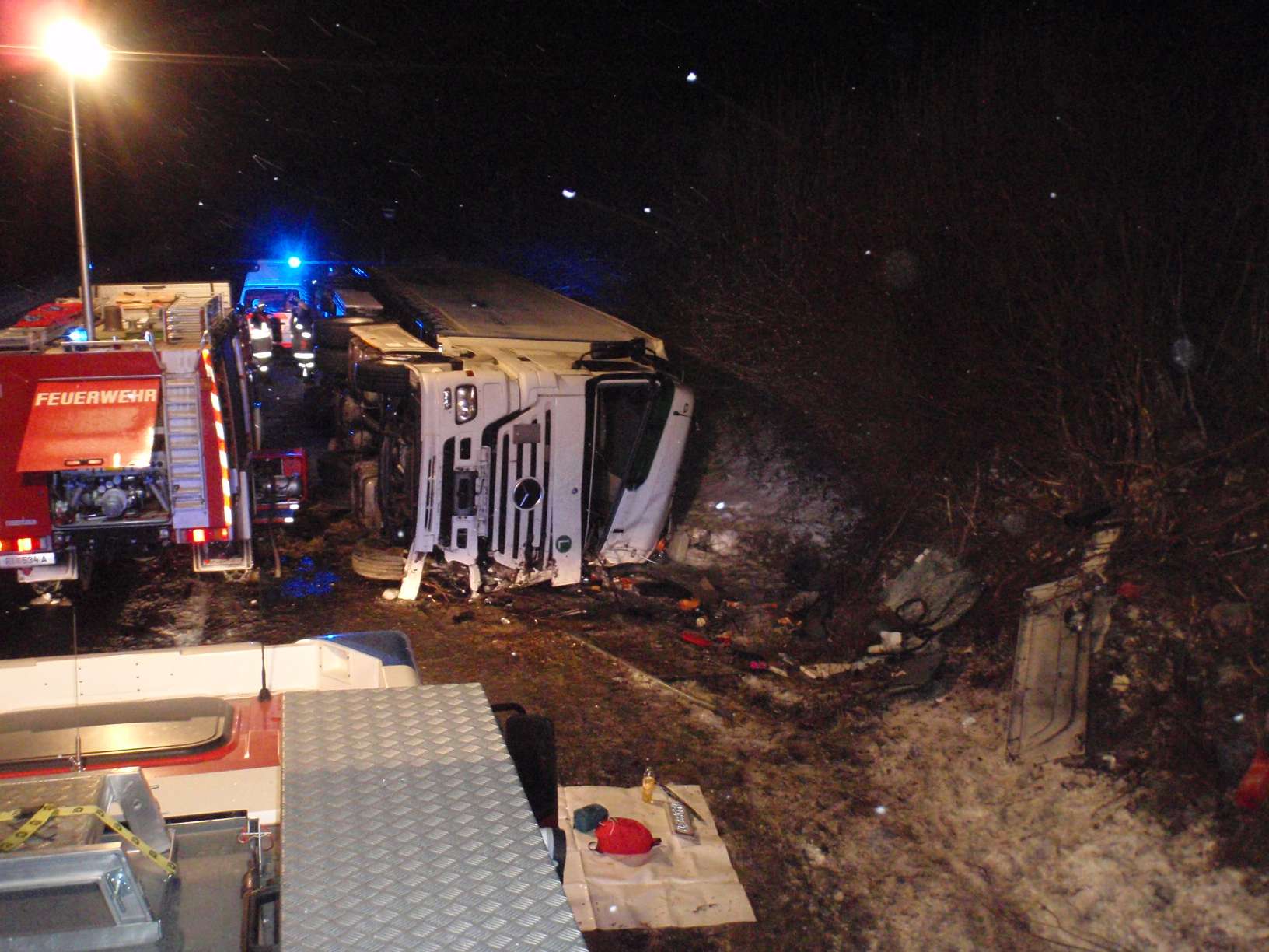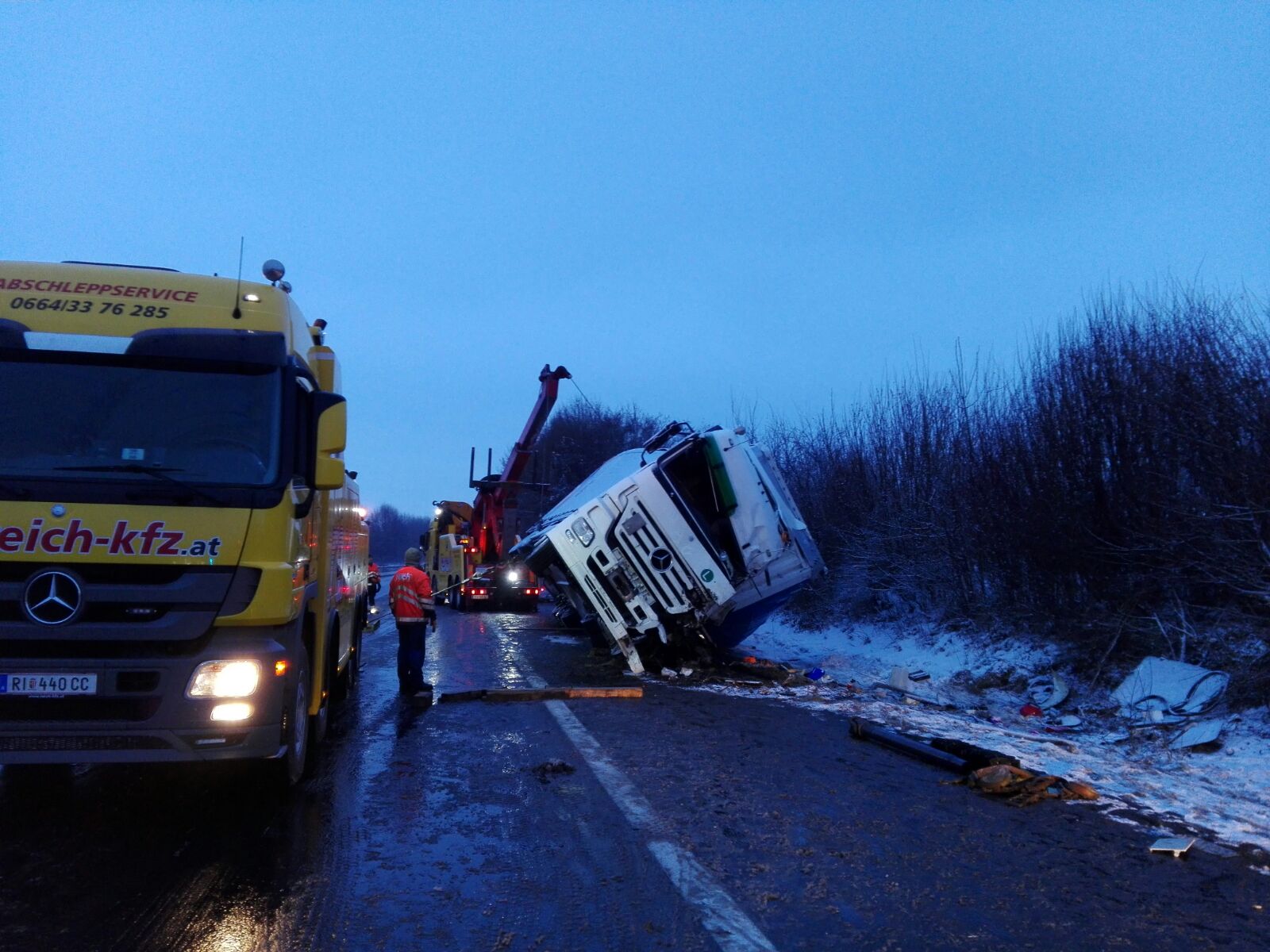 Ein schwerer Unfall mit einem Sattelschlepper ereignete sich am 16. Jänner 2017 um 3 Uhr auf der Autobahn A8. In Fahrtrichtung Suben kam das Fahrzeug ins Schleudern, kippte um und kam auf der Fahrerseite zum Liegen. Der Lenker war im Führerhaus eingeklemmt und auch der Beifahrer befand sich noch darin, als wir gemeinsam mit der Feuerwehr Antiesenhofen am Unfallort eintrafen. Es ist niemand stehen geblieben und auch der Unfallort war nicht abgesichert, klagte unser Kommandant Bernhard Ranseder. Nach der Befreiung der Personen unterstützten wir noch das angeforderte Unternehmen beim Aufräumen der Unfallstelle.