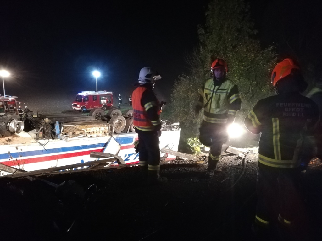 Im Baustellenbereich entstand erheblicher Sachschaden, am Sattelkraftfahrzeug Totalschaden. Die Fahrzeugbergung dauerte bis in die Morgenstunden des 14. Oktober 2021 an. Die Feuerwehren Ort und Antiesenhofen waren mit ca. 30 Personen im Einsatz.