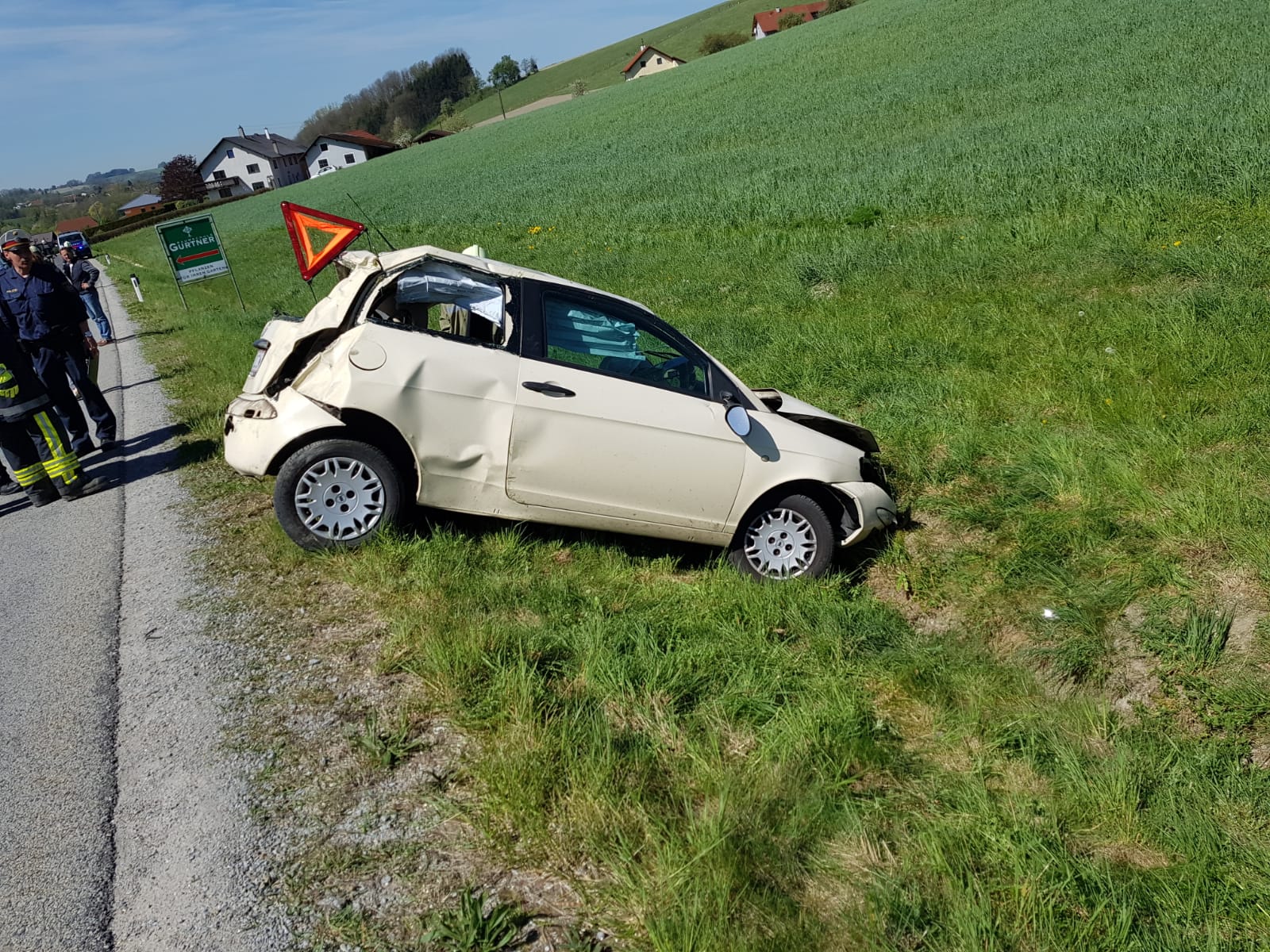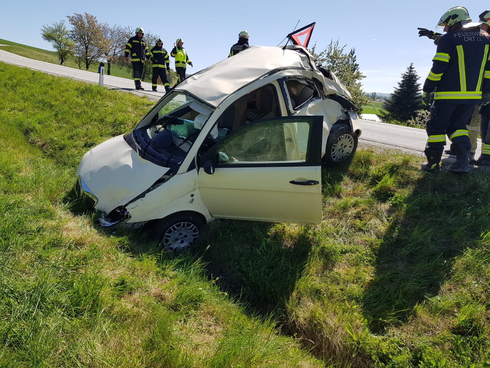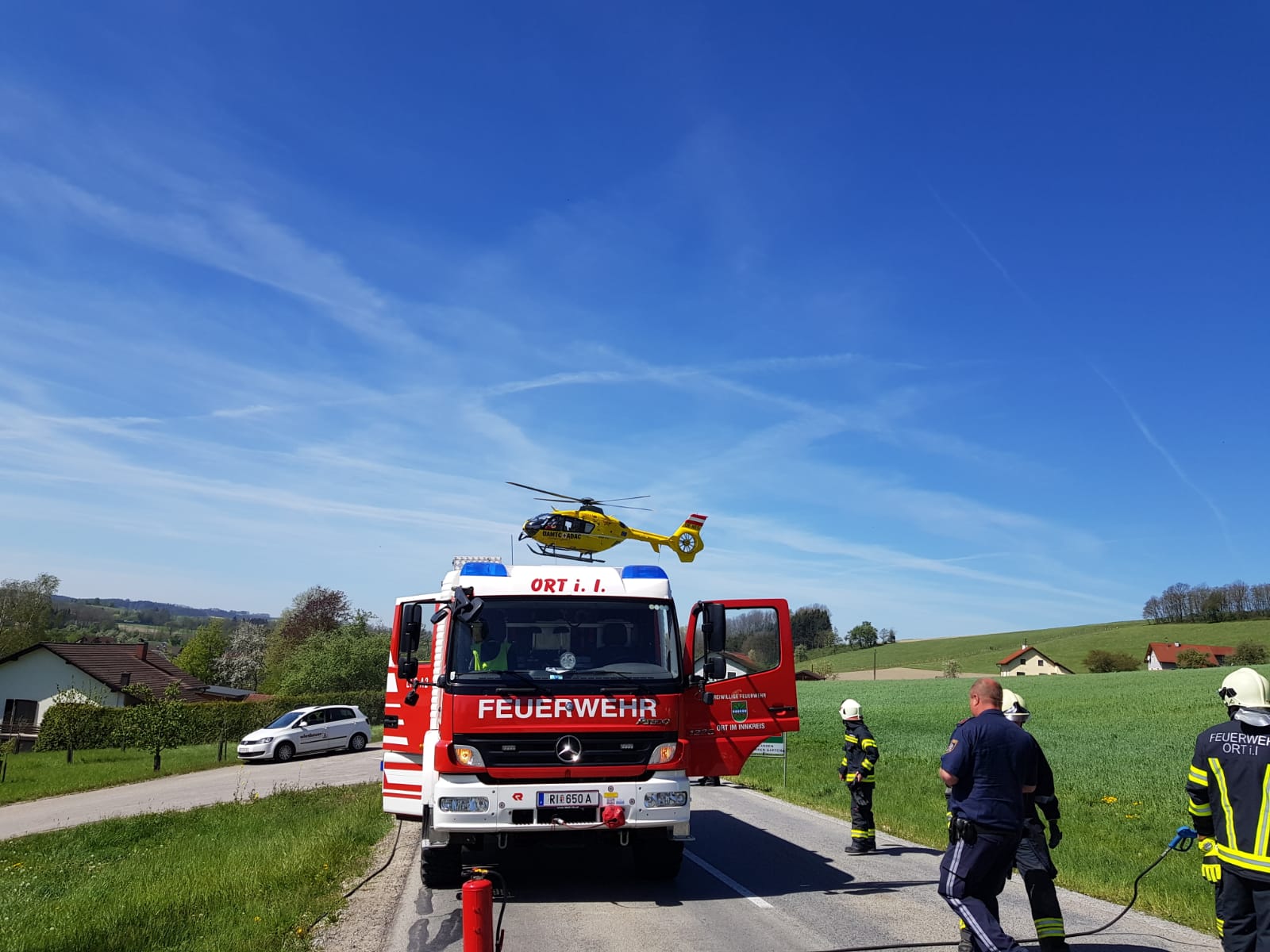 Beim Eintreffen an der Einsatzstelle wurde die verletzte Person bereits durch die Besatzung des Rettungshubschrauber Europa 3 versorgt. Die Person konnte das Fahrzeug unter Hilfe selbst verlassen. Nachdem die Vollsperre der L1112 wieder aufgehoben werden konnte war unser Einsatz beendet.