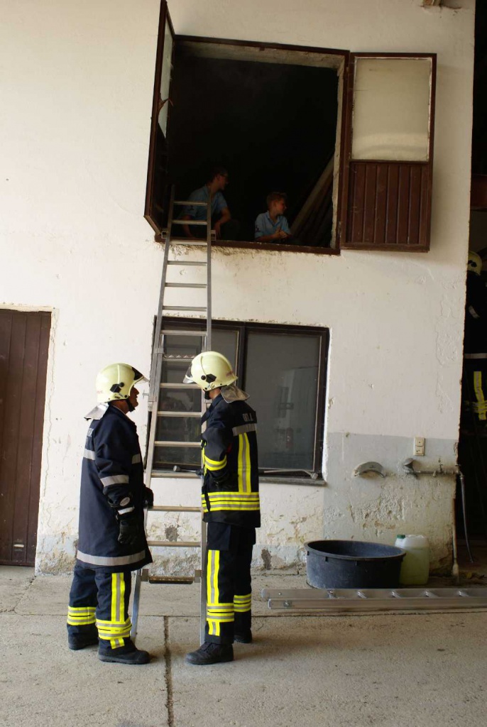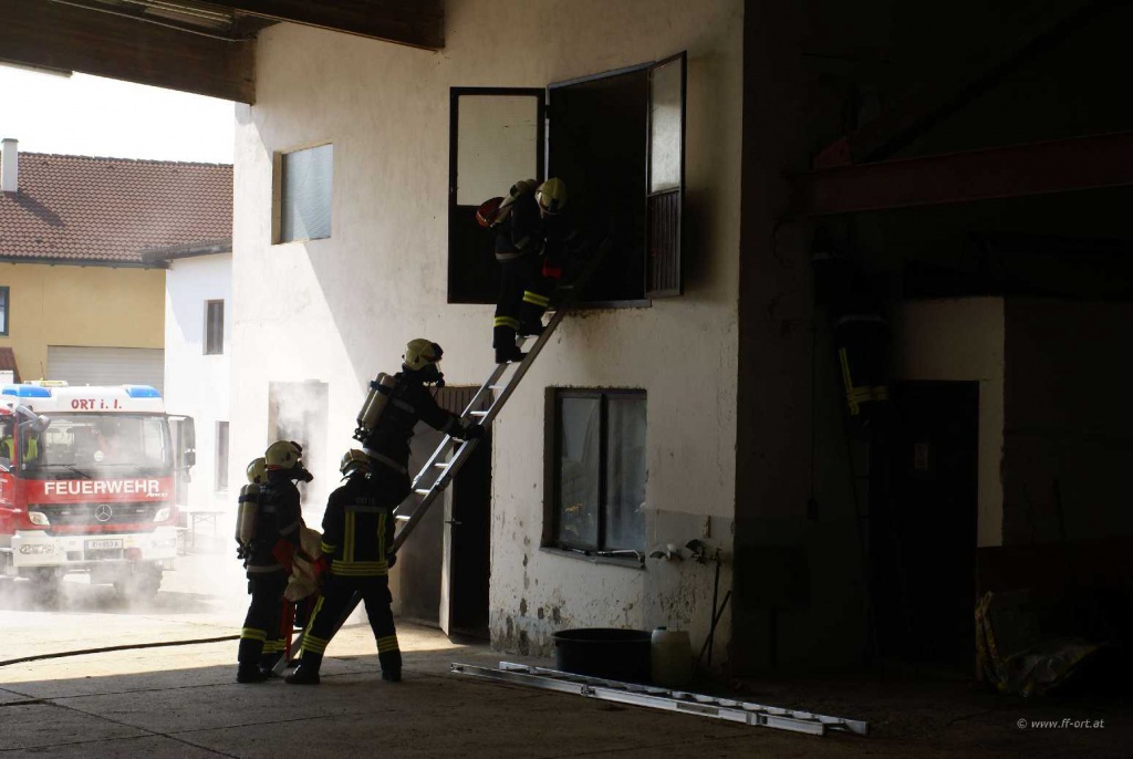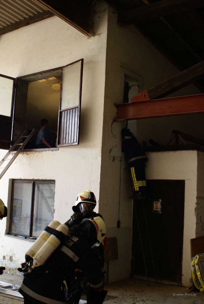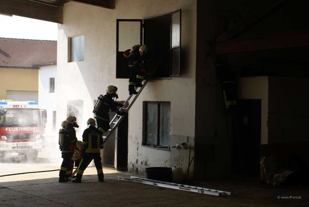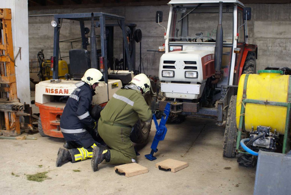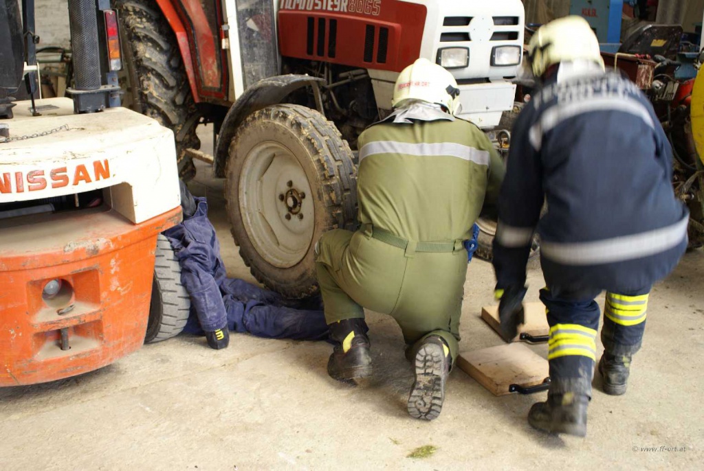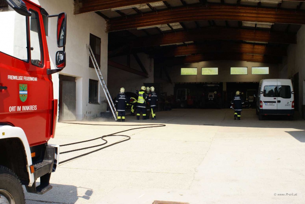Übungsszenario war ein Brand im Heizraum bei Baumschule Gurtner in Osternach mit vermissten Personen, sowie eine eingeklemmte Person unter landwirtschaftlichen Gerät.
