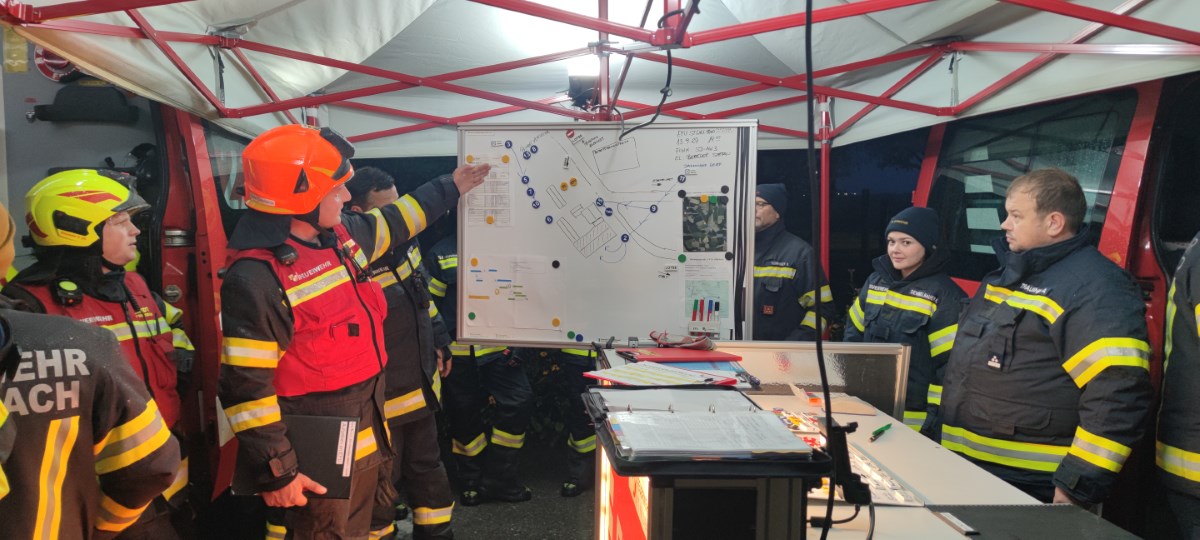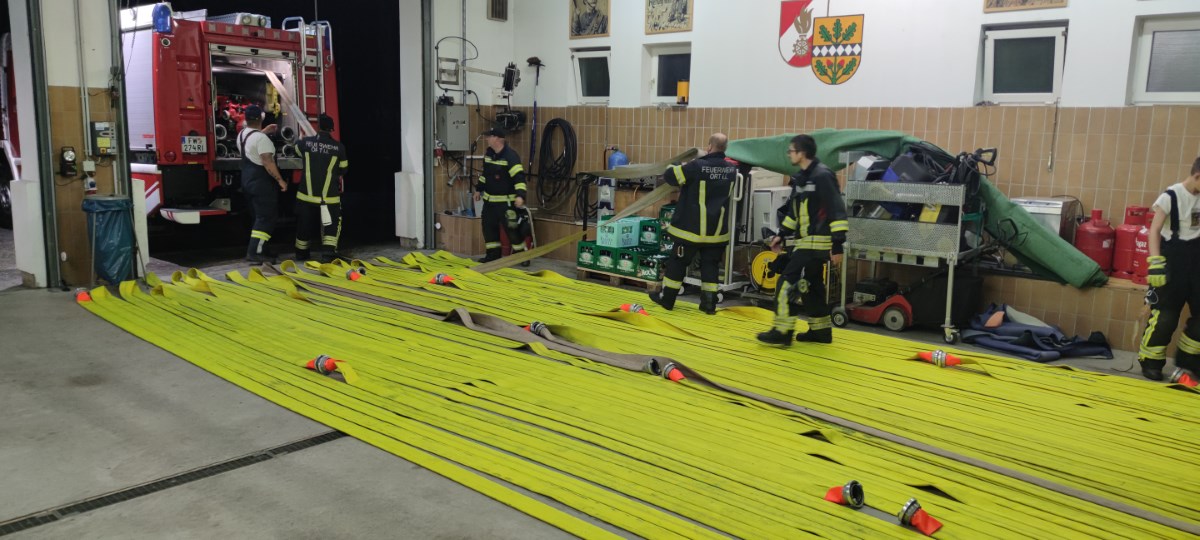 Die FF Ort war mit zwei vollbesetzten Fahrzeugen im Einsatz. Das LFB-A2 Team errichtete eine 800 Meter lange Zubringerleitung und stellte eine Reservepumpe zur Verfügung. Die Besatzung des Tank Ort bildete einen Atemschutztrupp, der erfolgreich eine vermisste Person aus dem Brandobjekt rettete und gefährliche Güter sicherte. Die Übung wurde durch herausfordernde Witterungsbedingungen erschwert.