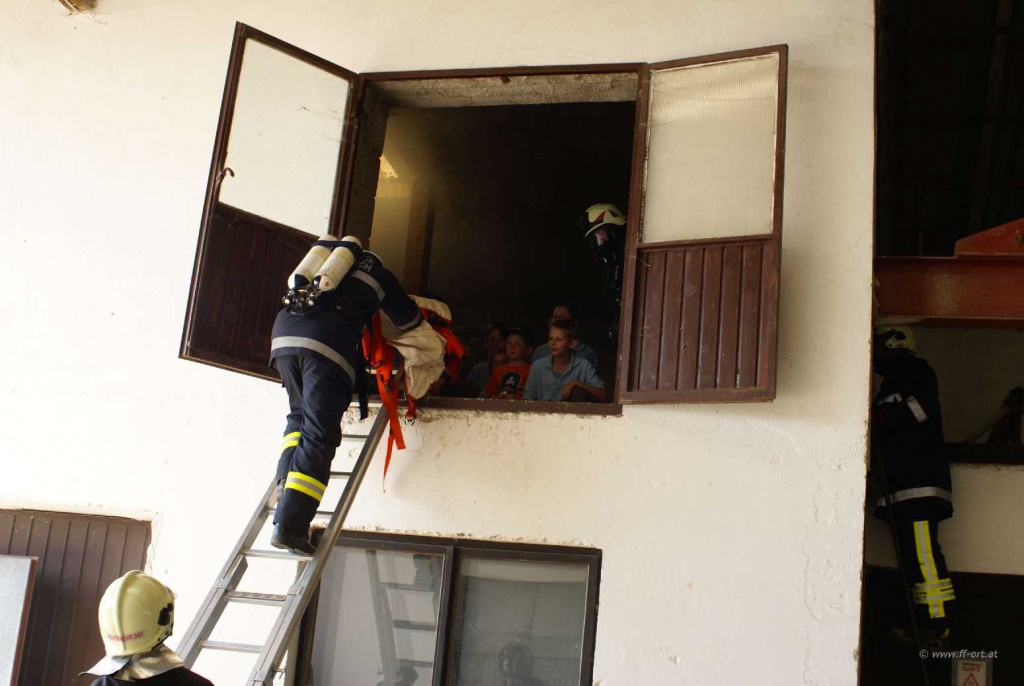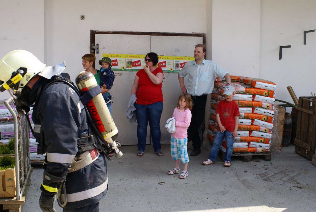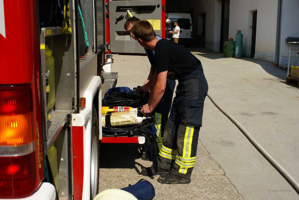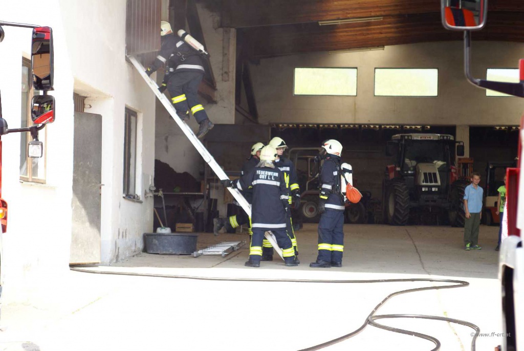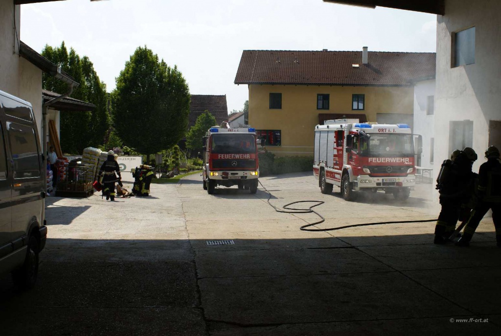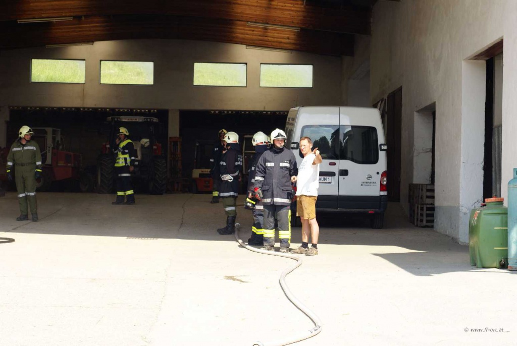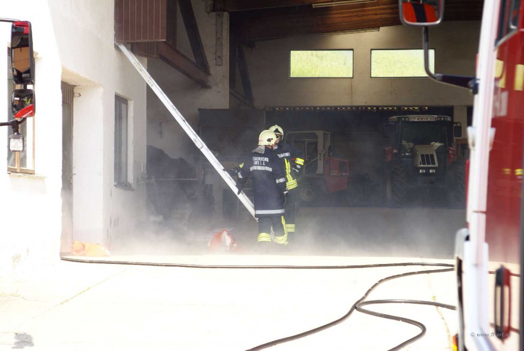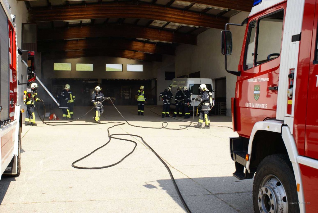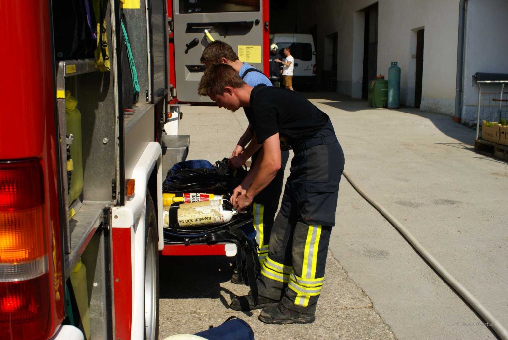 Übungsszenario war ein Brand im Heizraum bei Baumschule Gurtner in Osternach mit vermissten Personen, sowie eine eingeklemmte Person unter landwirtschaftlichen Gerät.