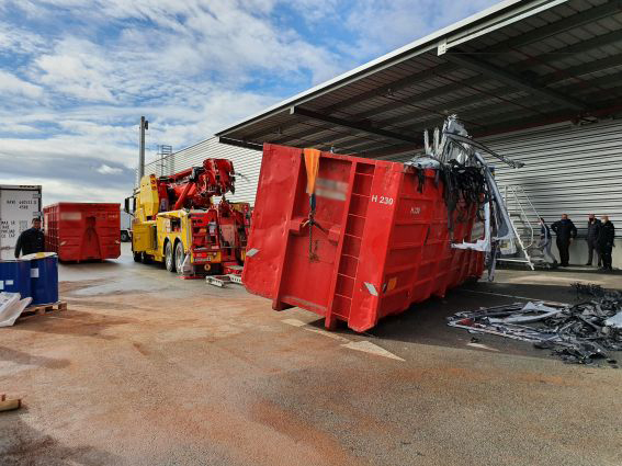 Gemeinsam mit der Firma Reich wurde der Lkw und Container aufgestellt und das Fahrzeug abtransportiert, das Firmengelände wurde noch gesäubert.