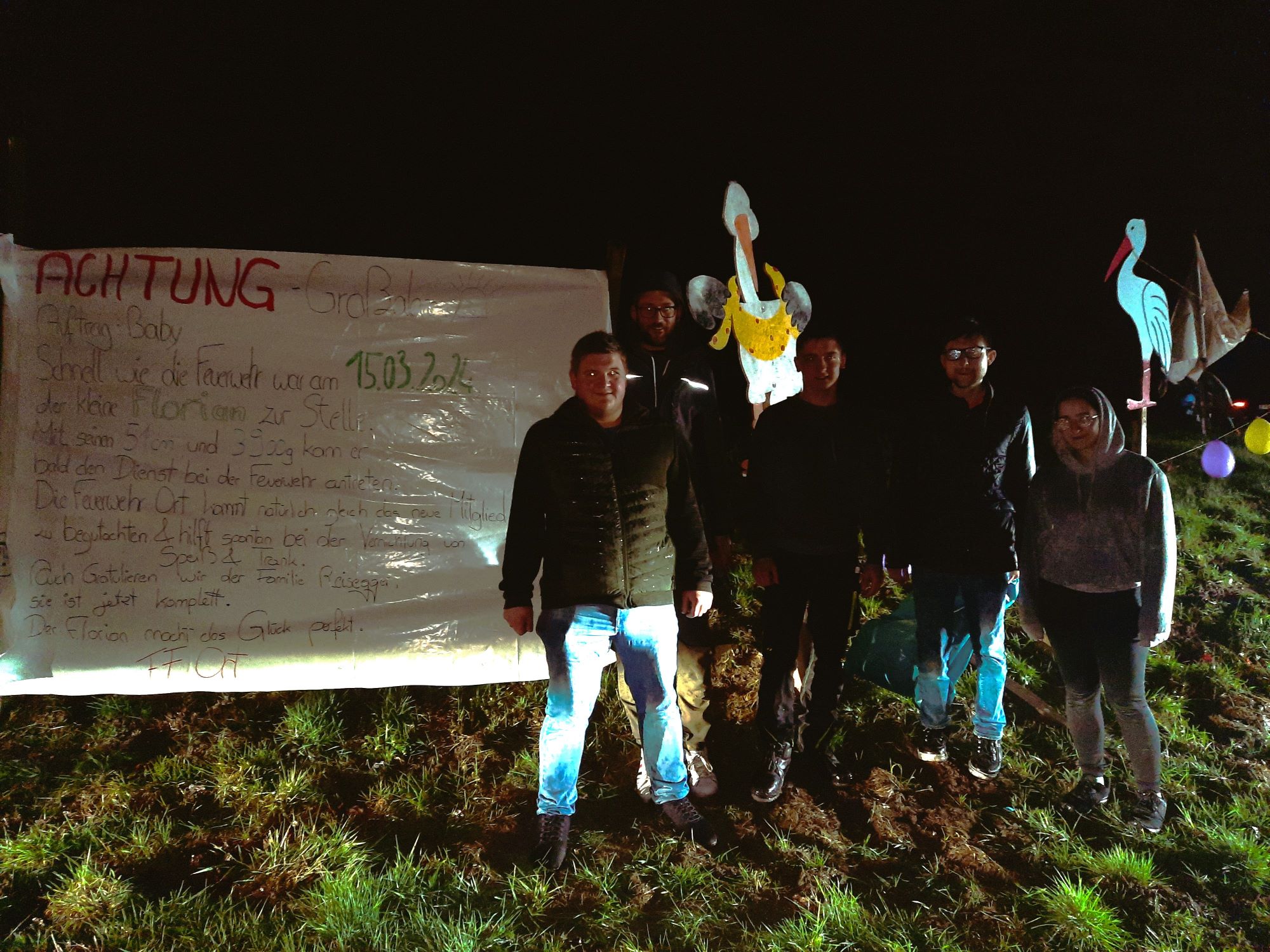 Am Abend stellten wir diesen mit einem Plakat auf und genossen danach noch ein paar gemütliche Stunden mit dem stolzen Vater.